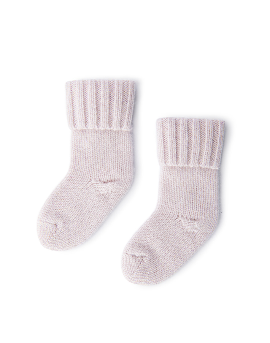 Бебешки чорапи VIVIA в розов цвят изработени от 100% кашмир. Розовите кашмирени чорапи впечатляват с изключителна мекота и топлина, осигурявайки комфорт през целия ден. Леките и фини влакна на кашмира ги правят нежни към кожата и подходящи както за домашен уют, така и за носене в ежедневието. Стилни, удобни и луксозни – тези детски розови кашмирени чорапи са идеалният спитник на вашите малки дами при студени дни. Детските розови кашмирени чорапи се предлагат в размери S и M.