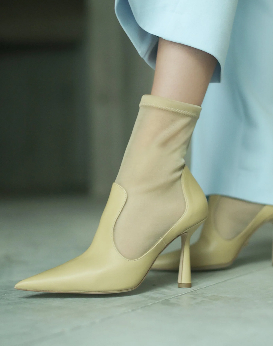 Ботуши ANNA BOOT 95 WHEAT LEATHER в бежов цвят изработени от луксозна италианска кожа с мека и еластична мрежеста структура, скроена така, че да пасва като чорап. Удобната височина на тока и елегантните линии на бежовите кожени ботуши създават впечатляващ стил, предназначен да допълни класическа или по-официална визия. Независимо дали ги комбинирате с елегантна вечерна визия или със стилен дневен тоалет, ботуши ANNA BOOT 95 WHEAT LEATHER придават изтънченост и женственост на всяка стъпка. Фините детайли и прецизната изработка подчертават луксозния характер на модела, а стабилната конструкция гарантира увереност и комфорт през целия ден. Това е обувка, създадена за жени, които ценят безкомпромисния стил, качеството и усещането за лекота. Дамските бежови ботуши се предлагат в размери 35, 36, 37, 38, 39, 40 и 41.