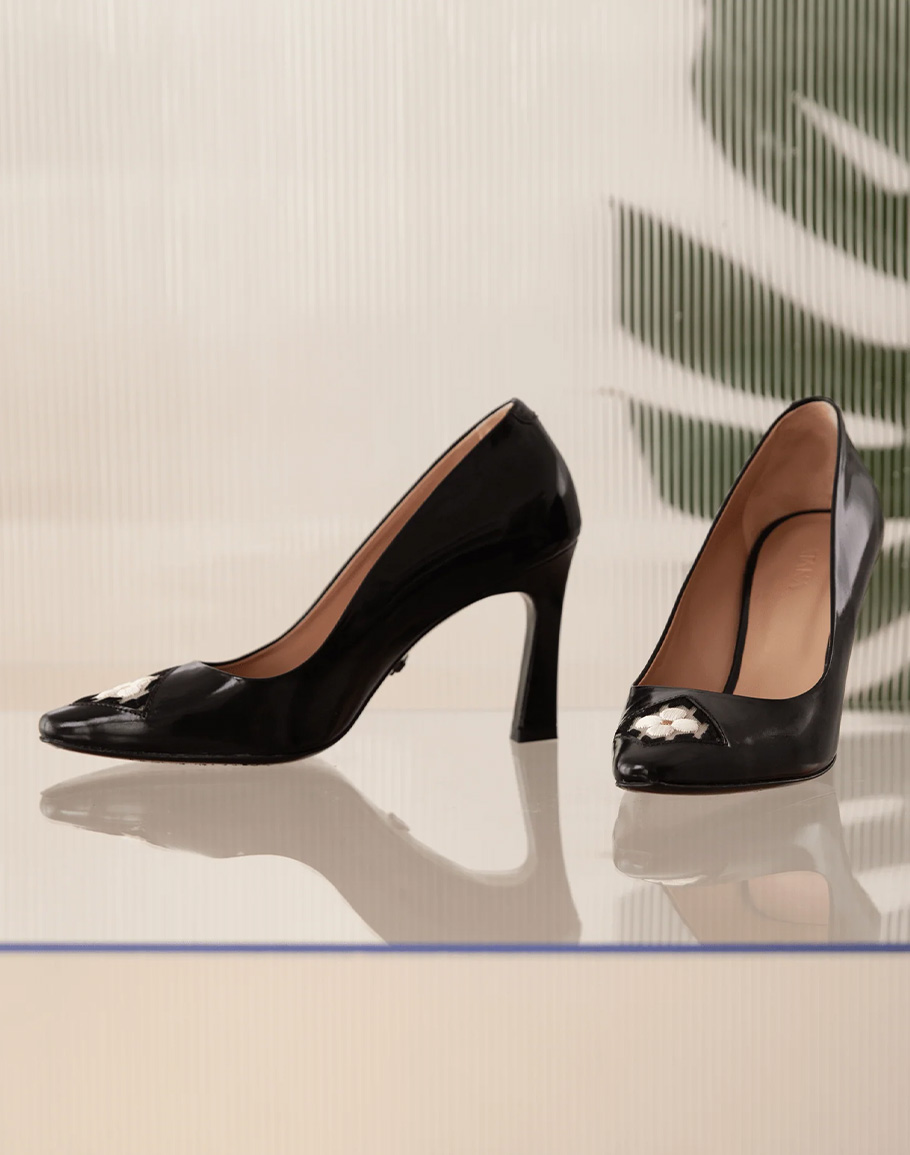 Обувки FIORELLINI PUMP IN SEMI-PATENT LEATHER 85 BLACK в черен цвят внасят стил и елегантност на ток от 85 мм с класическа форма чарлстон. Черните токчета FIORELLINI са с изящна флорална бродерия, разработена в най-добрите бродерийни къщи в Италия, и имат вградени възглавнички от алое за комфорт. Независимо дали ги комбинирате с елегантна вечерна визия или със стилен дневен тоалет, обувки FIORELLINI PUMP IN SEMI-PATENT LEATHER 85 BLACK придават изтънченост и женственост на всяка стъпка. Фините детайли и прецизната изработка подчертават луксозния характер на модела, а стабилната конструкция гарантира увереност и комфорт през целия ден. Това е обувка, създадена за жени, които ценят безкомпромисния стил, качеството и усещането за лекота. Дамските черни токчета с флорална бродерия се предлагат в размери 35, 36, 37, 37.5, 38, 38.5, 39, 39.5, 40 и 41.