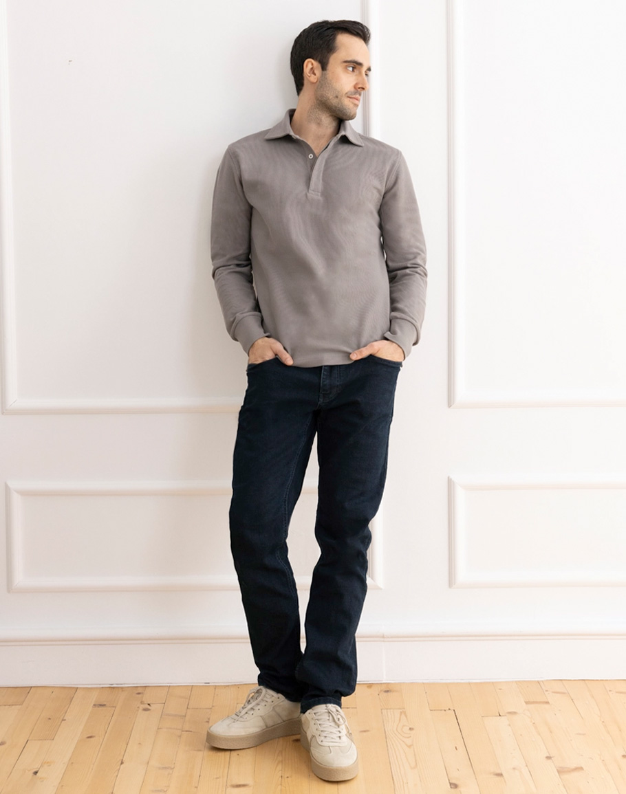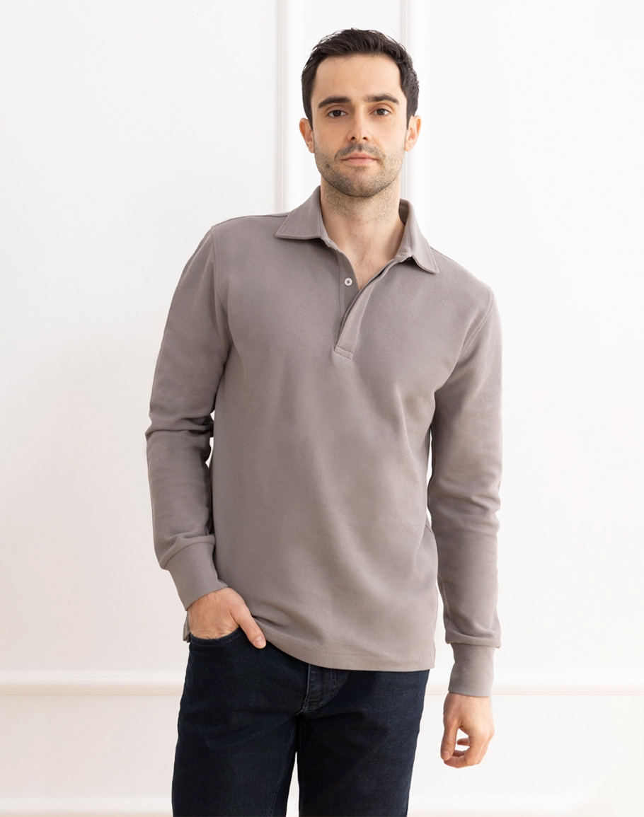Мъжка поло риза MATEI GREY в сив цвят е перфектна за мъже, които ценят баланса между спортна и елегантна визия. Мъжката сива поло риза е с regular силует, с дълъг ръкав и скрит пластрон. Маншетите на ръкава допринасят за по-спортен fit на модела. Сивата блуза е конструирана от 100% висококачествен памук жакард, натурална и дишаща материя. Еластичната материя на блузата гарантира комфорт и свобода при носене. Релефността на плата допринася за запомняща се визия. Уникална жакард разработка. Мъжката поло риза е идеална за различни поводи – от офис облекло до ежедневна визия. Мъжката сива поло риза се предлага в размери S, M, L, XL и 2XL.
