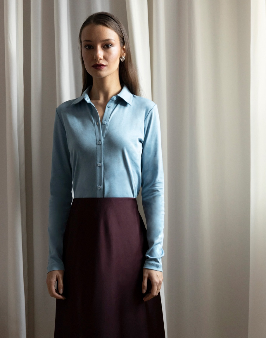 Дизайнерска риза на българския бранд NOLLÍ. NOLLÍ е марка вдъхновена от устойчивата мода, създадена с внимание към детайла. Продуктите на марката са фокусирани към висок клас естествени материи, като за тях ключов елемент в дизайна е комфорта. Произвеждат продуктите им в семейната им компания с 30 годишен опит. Мисията на марка NOLLÍ е да даде нов прочит на любимите Basics. Да създават непреходни дизайни, които са неподвластни на времето. Да разкажат историята на всеки плат и модел, като добавят идентичност, увереност и стил към гардероба ви.