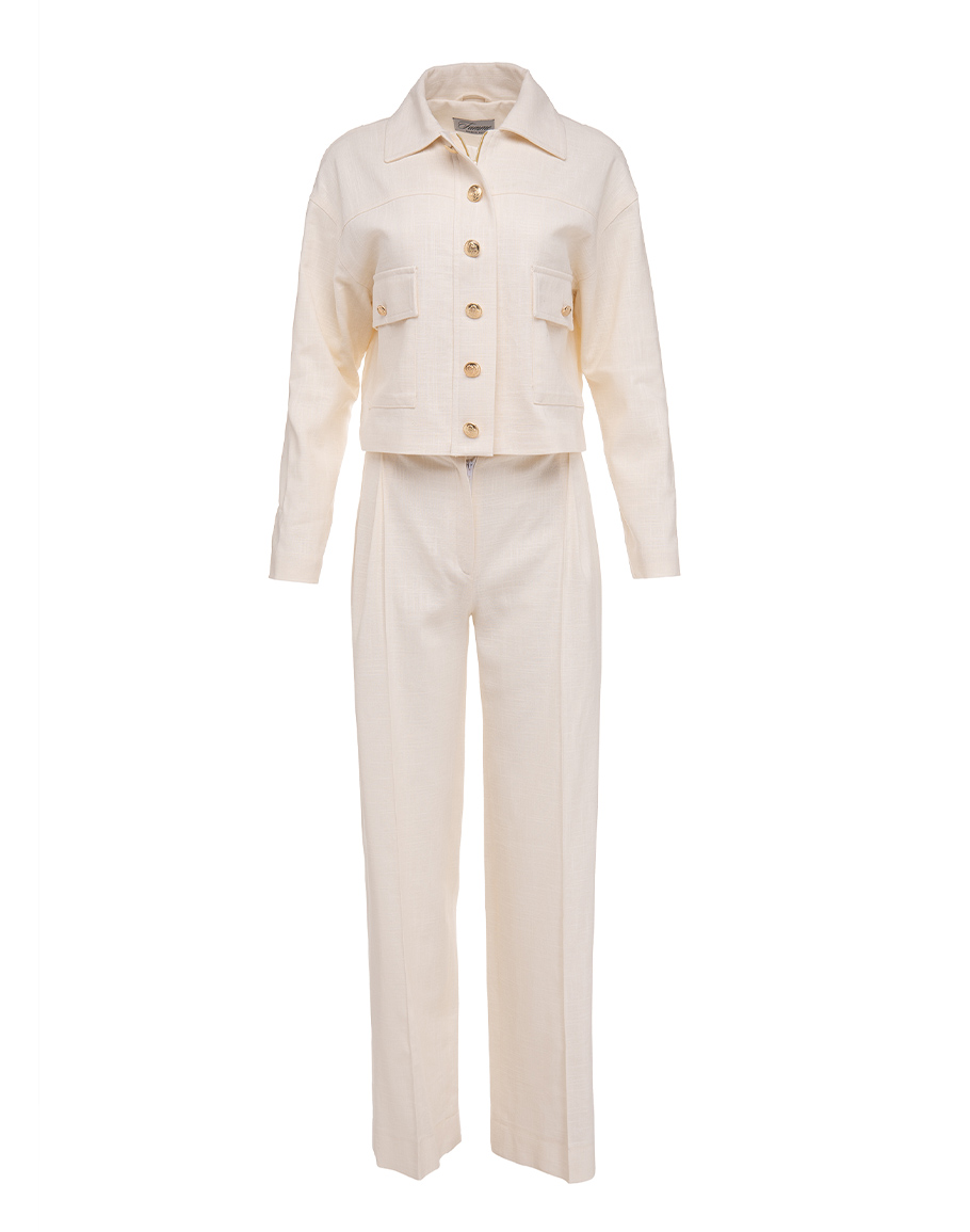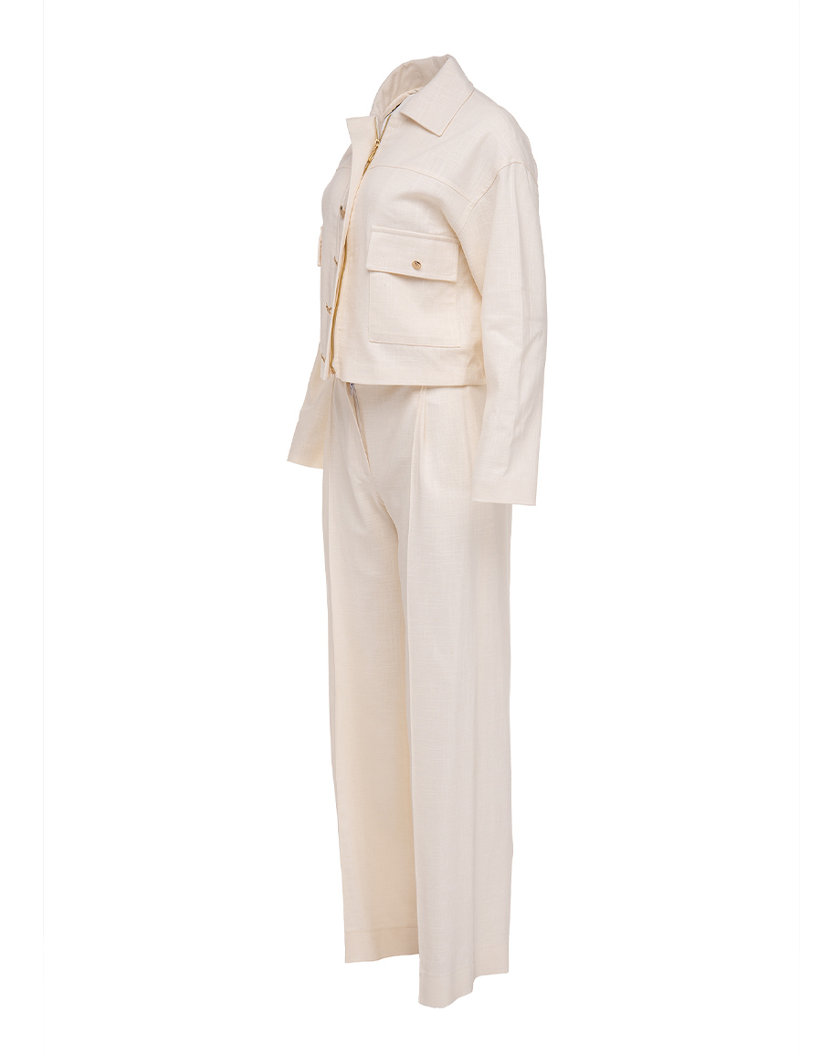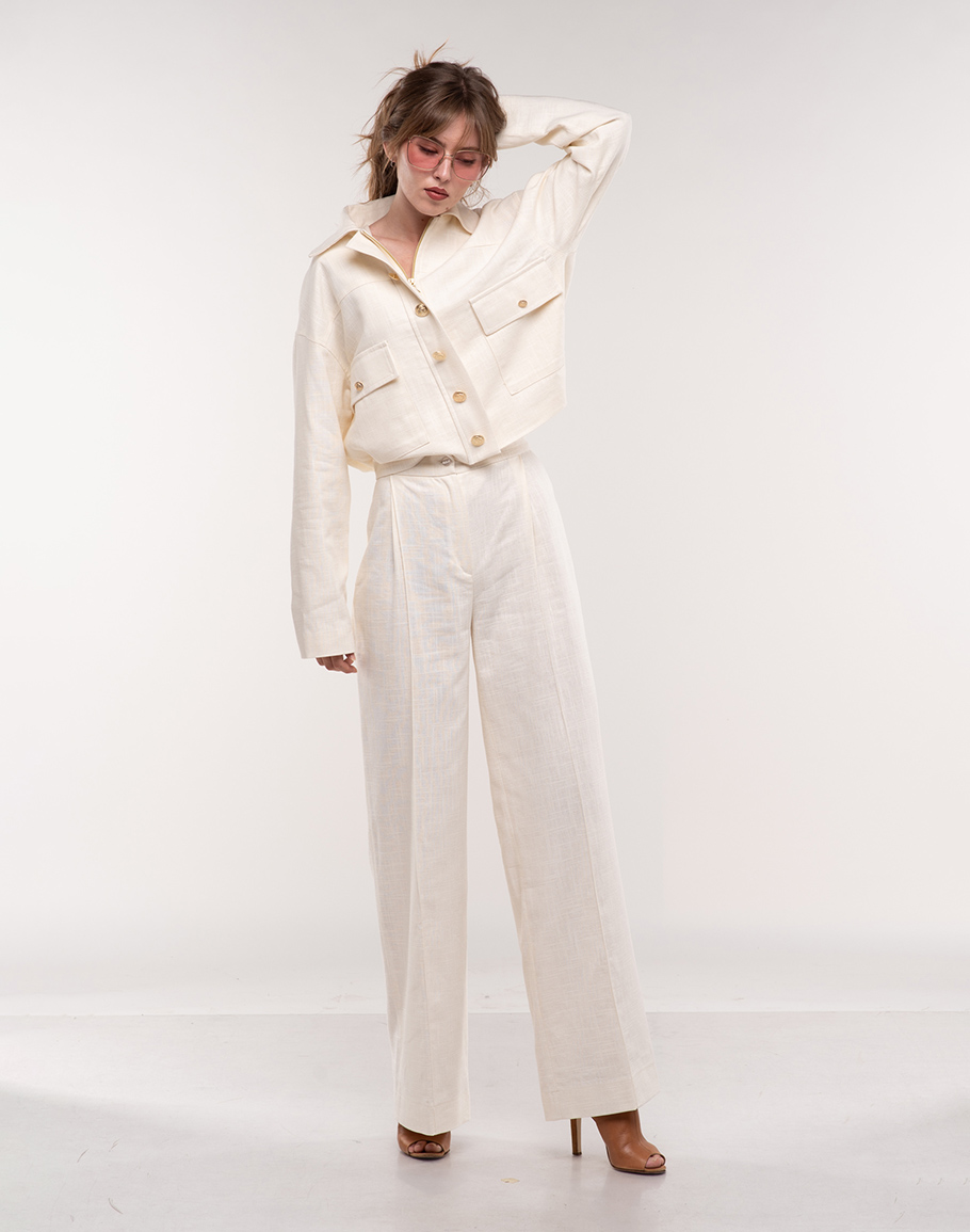 Прав ленен панталон в цвят ванилия