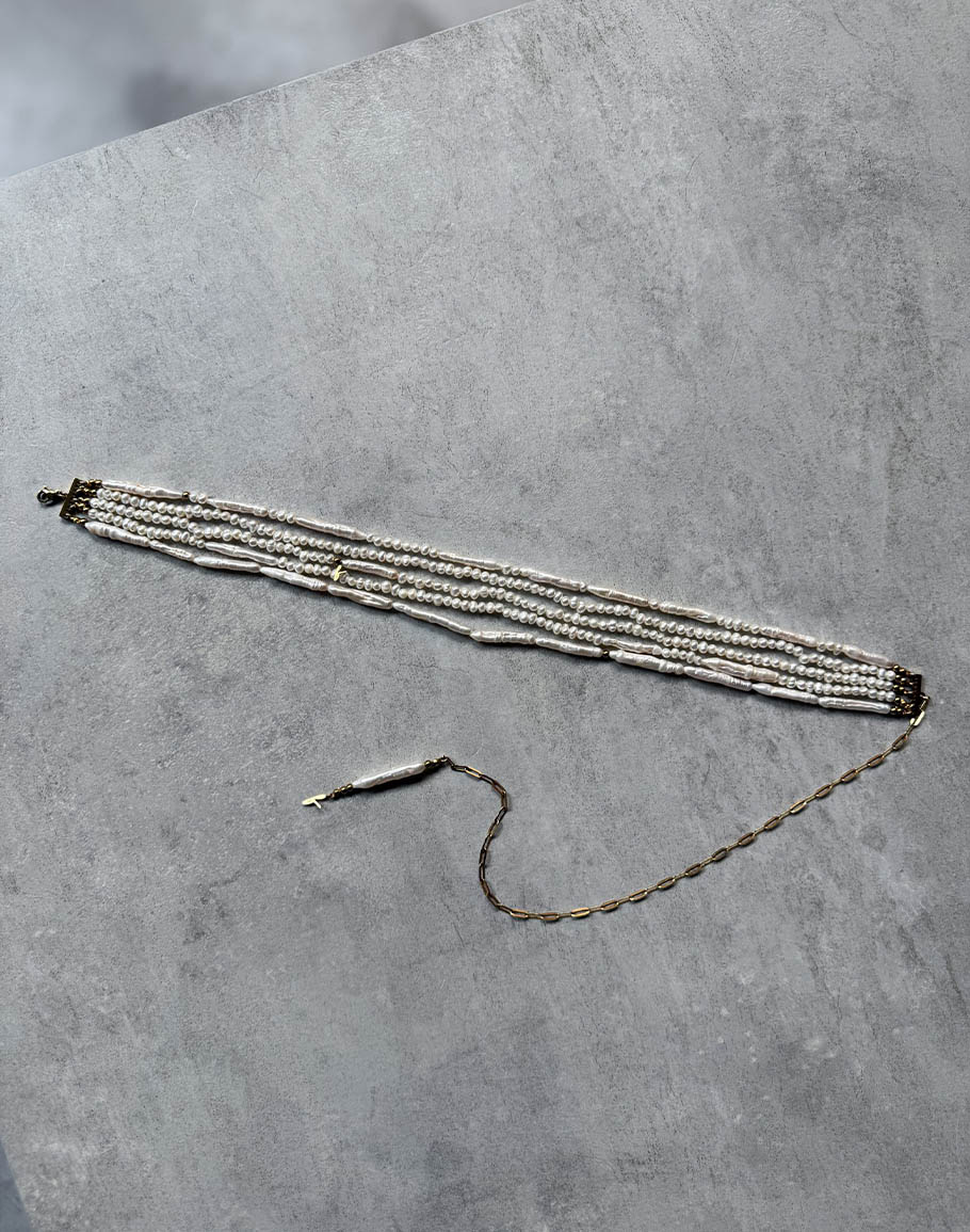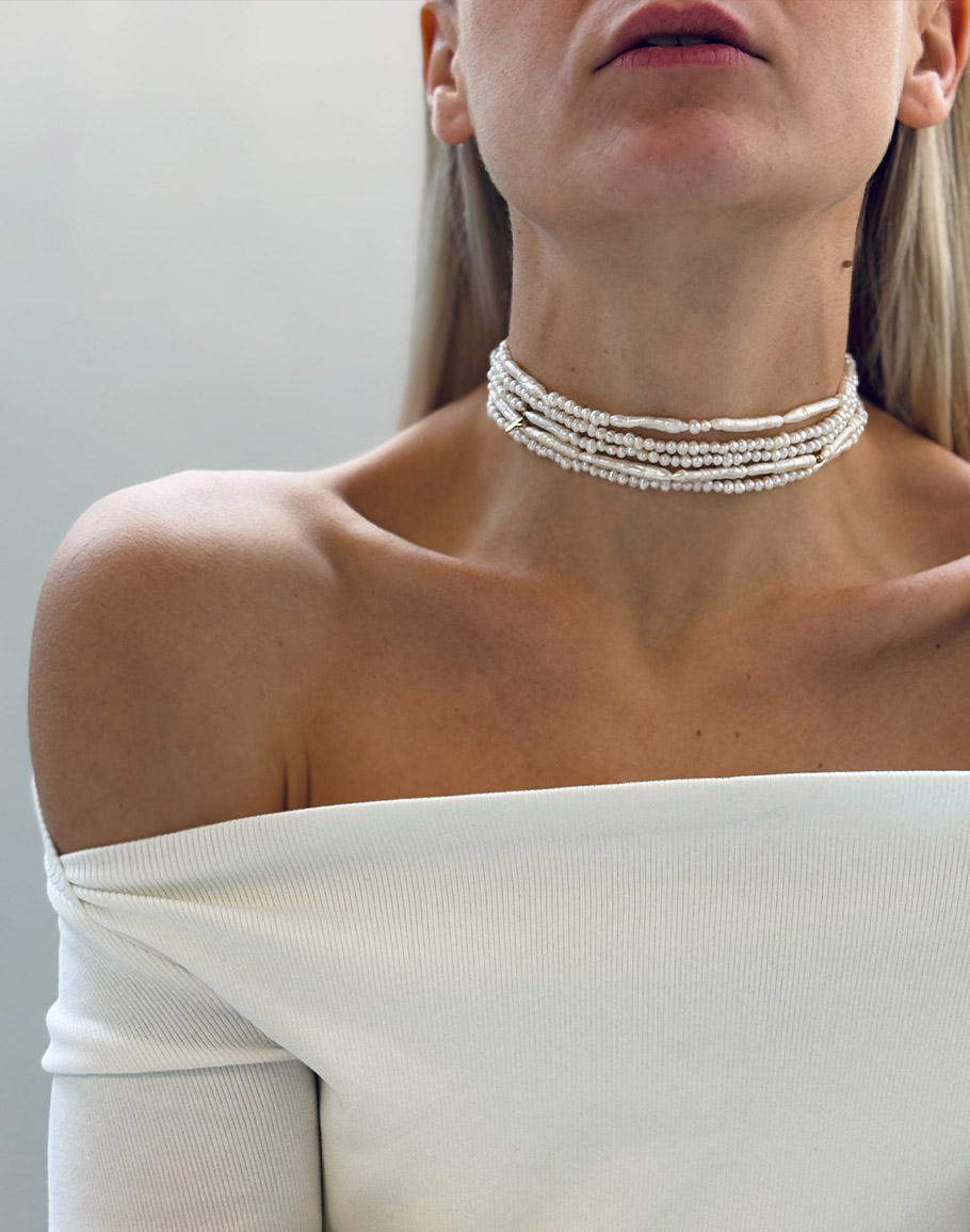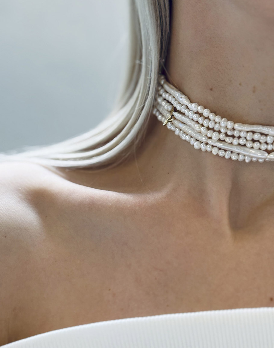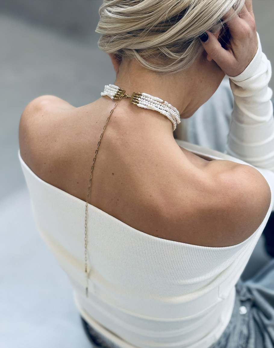 Колие SNOW WHITE произведено от хипоалергенни материали. Колието е многопластово декорирано с нарутални речни перли и стоманени елементи. Колието е ръчно изработено с любов и внимание към всеки детайл. Колието ефектно и стилно ще завърши вашата визия на плажа и в града. Спазвайте препоръките за употреба за по-дълъг живот на колието. Дамското колие се предлага в златист и сребрист цвят. Перфектен избор за подарък.