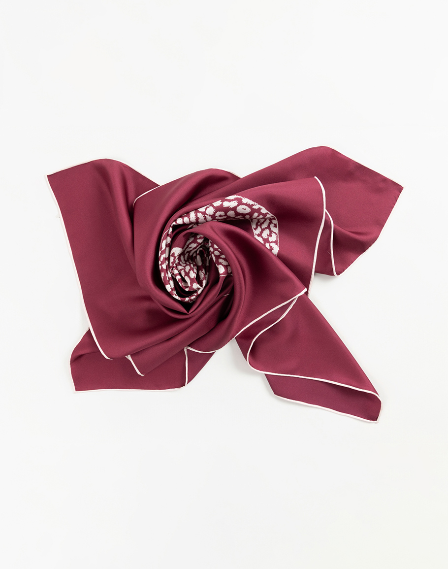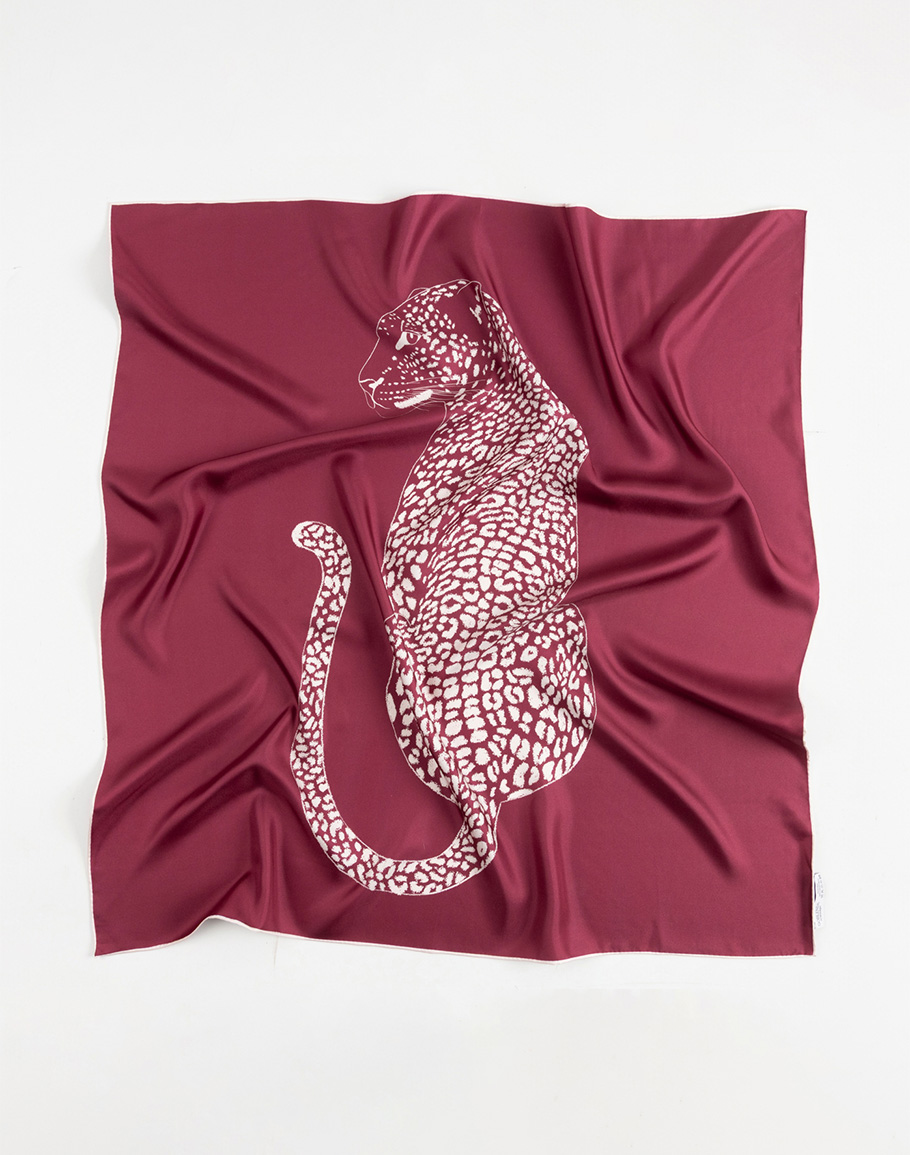 Копринен шал SABRINA с размери 90×90 см е създаден от 100% висококачествена коприна Mulberry Silk, която му придава невероятна мекота, нежен блясък и усещане за абсолютен лукс. Коприненият шал е с леопардов мотив – изтънчено, но дръзко, точно като Сабрина, която се връща от Париж като нова жена. Шал за онези, които вярват, че истинската трансформация идва отвътре. Двустранно печатан и с изискан ръчен подгъв, коприненият бордо шал е истинско произведение на изкуството. Всеки модел е част от лимитирана серия от само 150 броя, като шалът пристига със сертификат за автентичност, подчертавайки неговата уникалност и колекционерска стойност. Коприненият шал с леопард е чудесен избор за подарък.