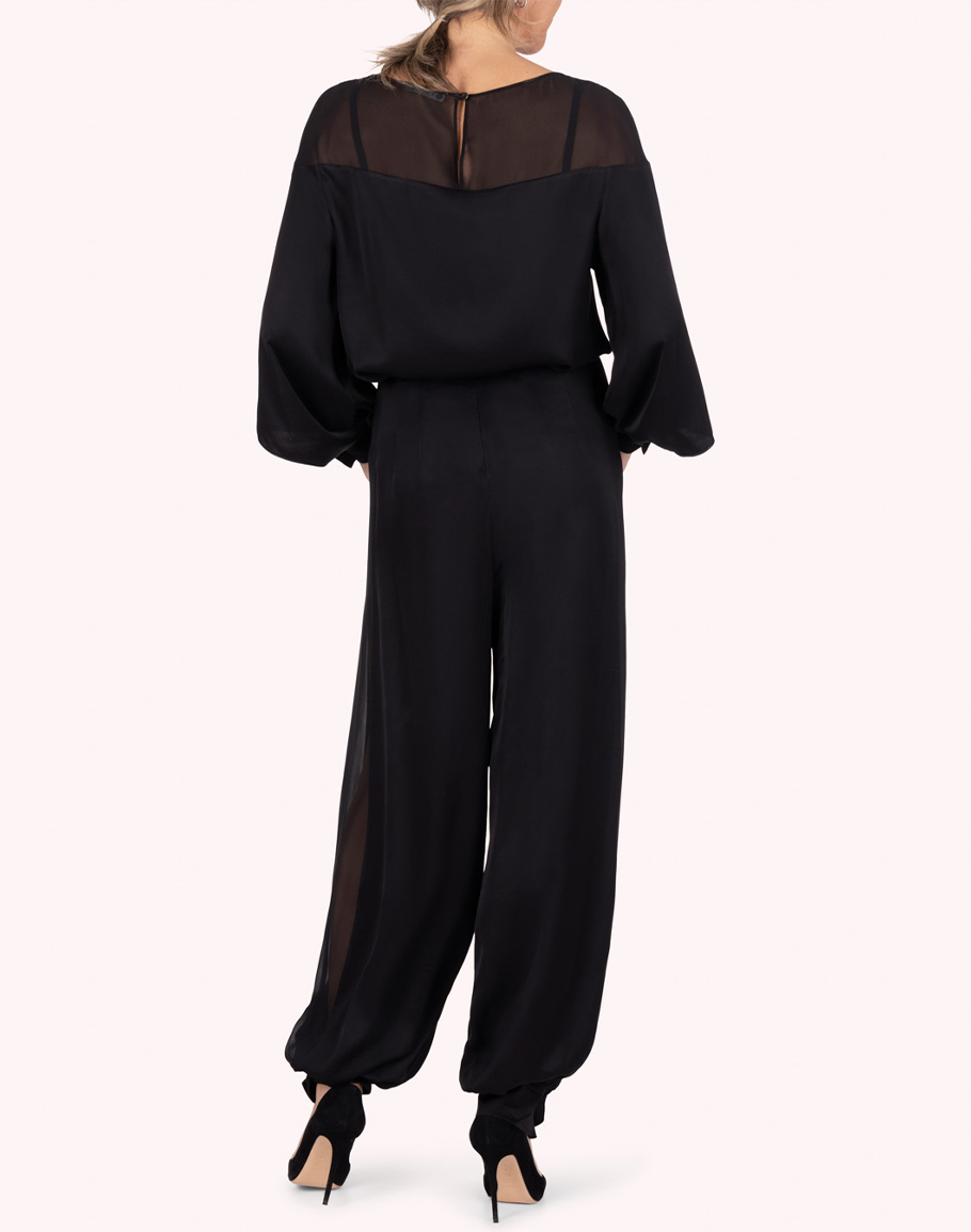 Копринена блуза с ръкав чадър в черно