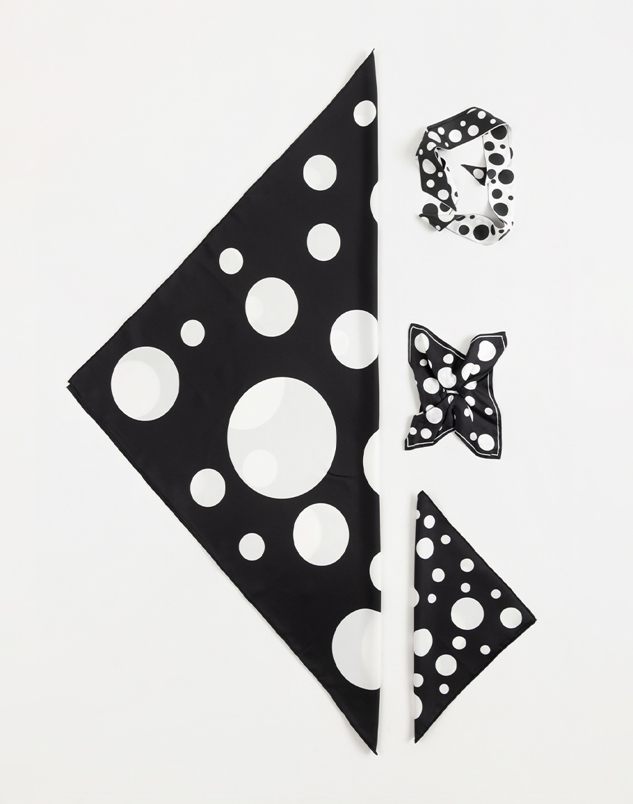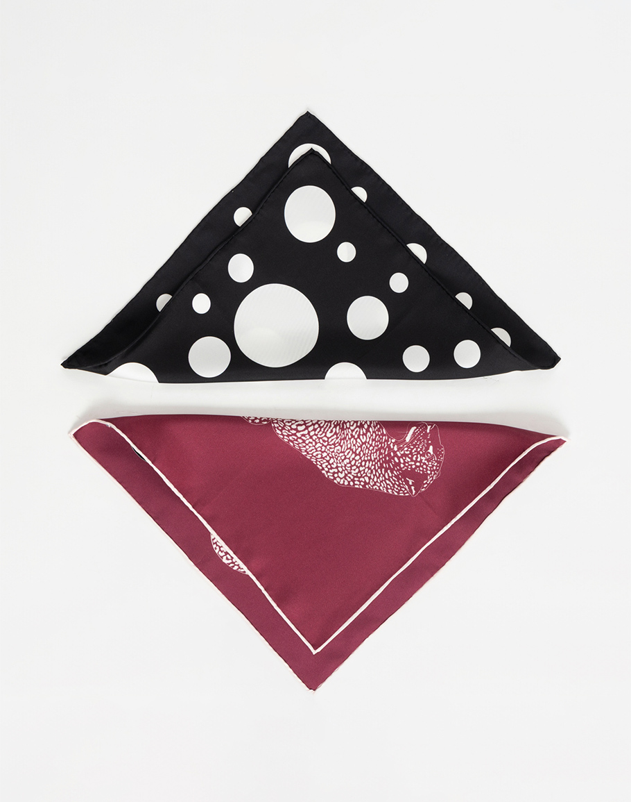 За да запазите красотата на своята копринена кърпичка, избягвайте контакт с дъжд, вода и всякакви химикали (включително парфюми и кремове). Съхранявайте я разгъната и без да е завързана. При нужда я почиствайте само в професионално химическо чистене.