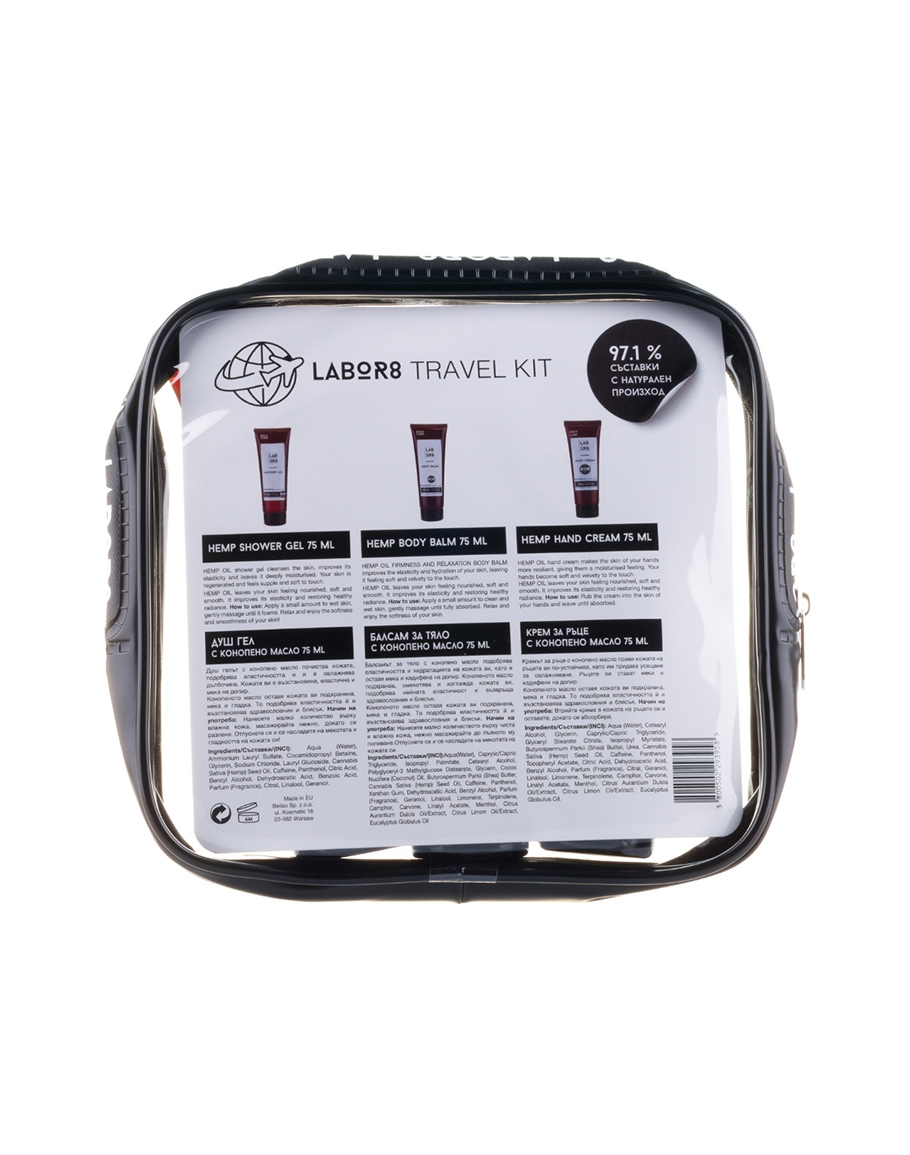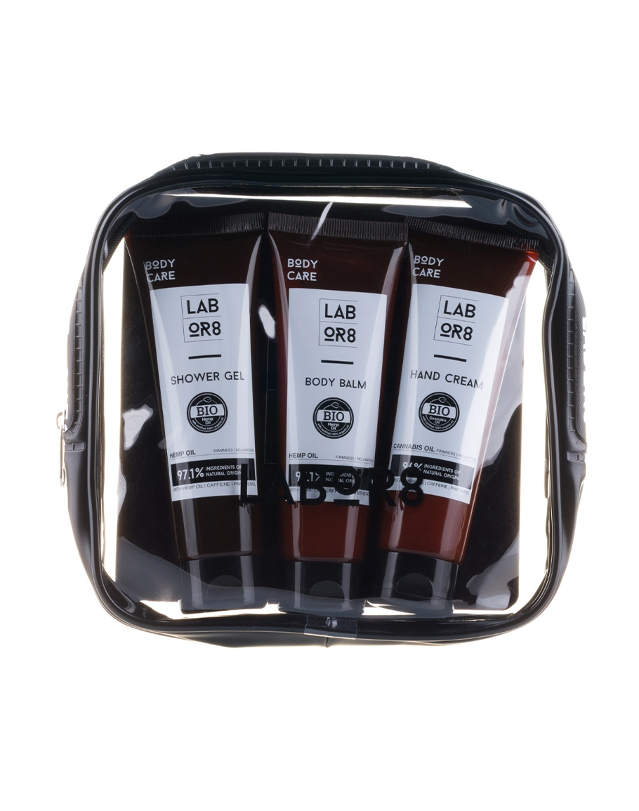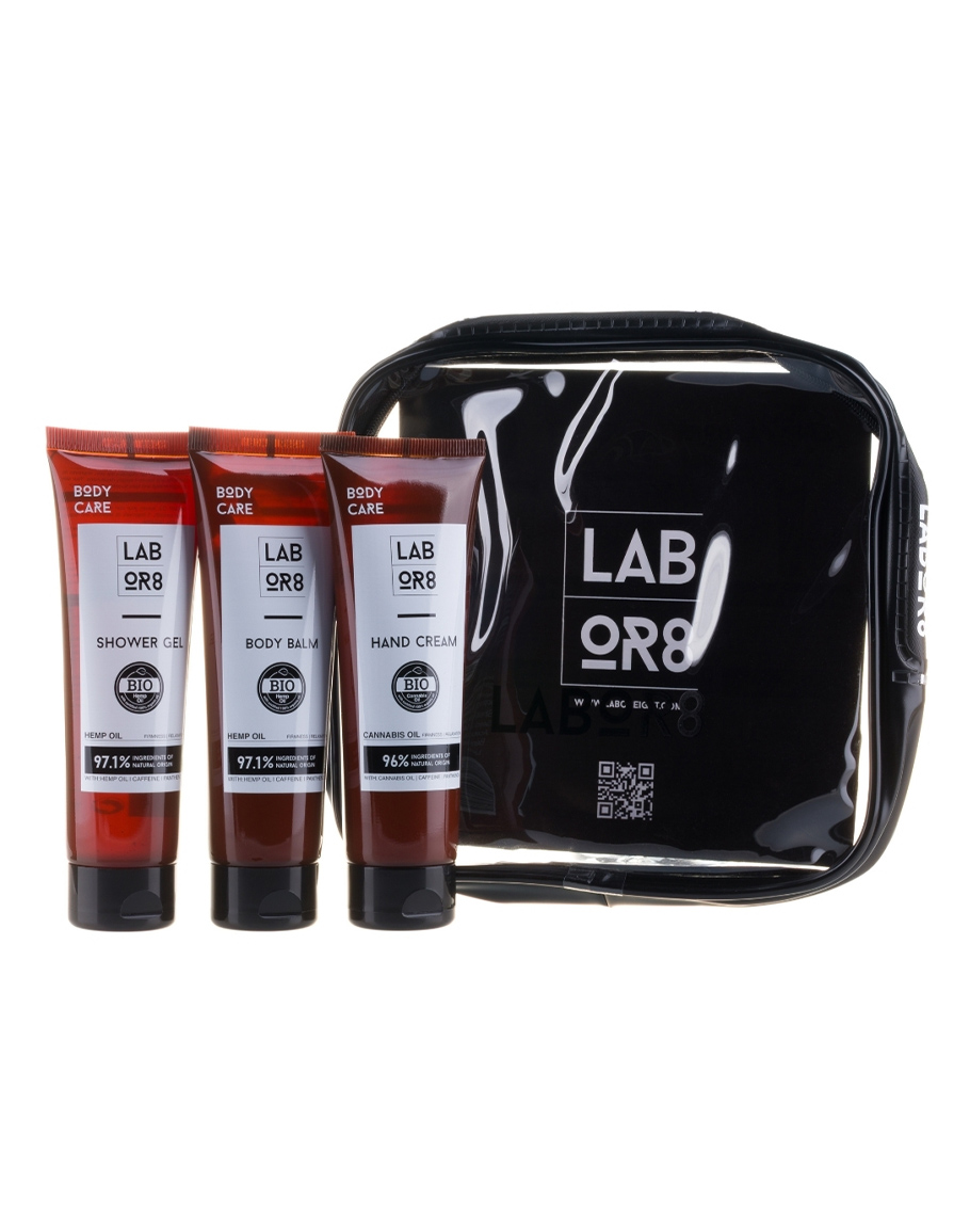Открий силата на грижата навсякъде с Labor8 Travel Kit – специално създаден козметичен несесер, който събира три незаменими продукта: