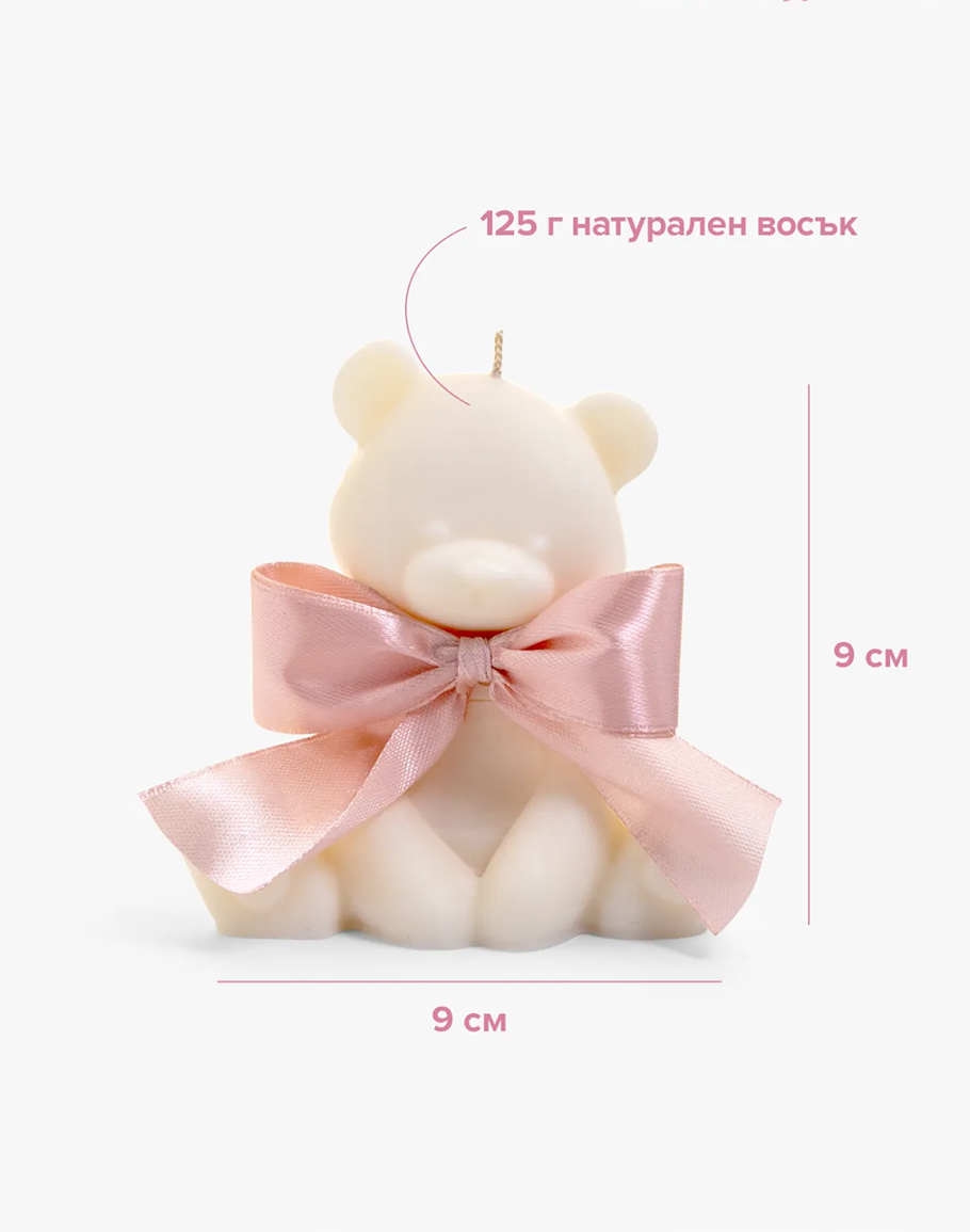 Мече с мисия PINK с кауза носещ топъл аромат на любов. Подарете нещо различно и с кауза – сет от ръчно изработена свещ с кауза и кибрит. Свещта е с аромат на ябълка в завладяваща комбинация с топлия аромат на дърво. Красив цветен аромат с нежни нотки на сладост.