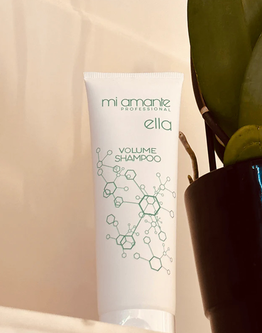 Шампоан за обем MI AMANTE ELLA VOLUME подходящ за тънки коси без обем. Безсулфатният шампоан уплътнява косата. Volume Shampoo Ella подхранва фината коса от корена до върха. Осигурява обем и плътност от първото измиване. С оризов протеин, касия и арганово масло.