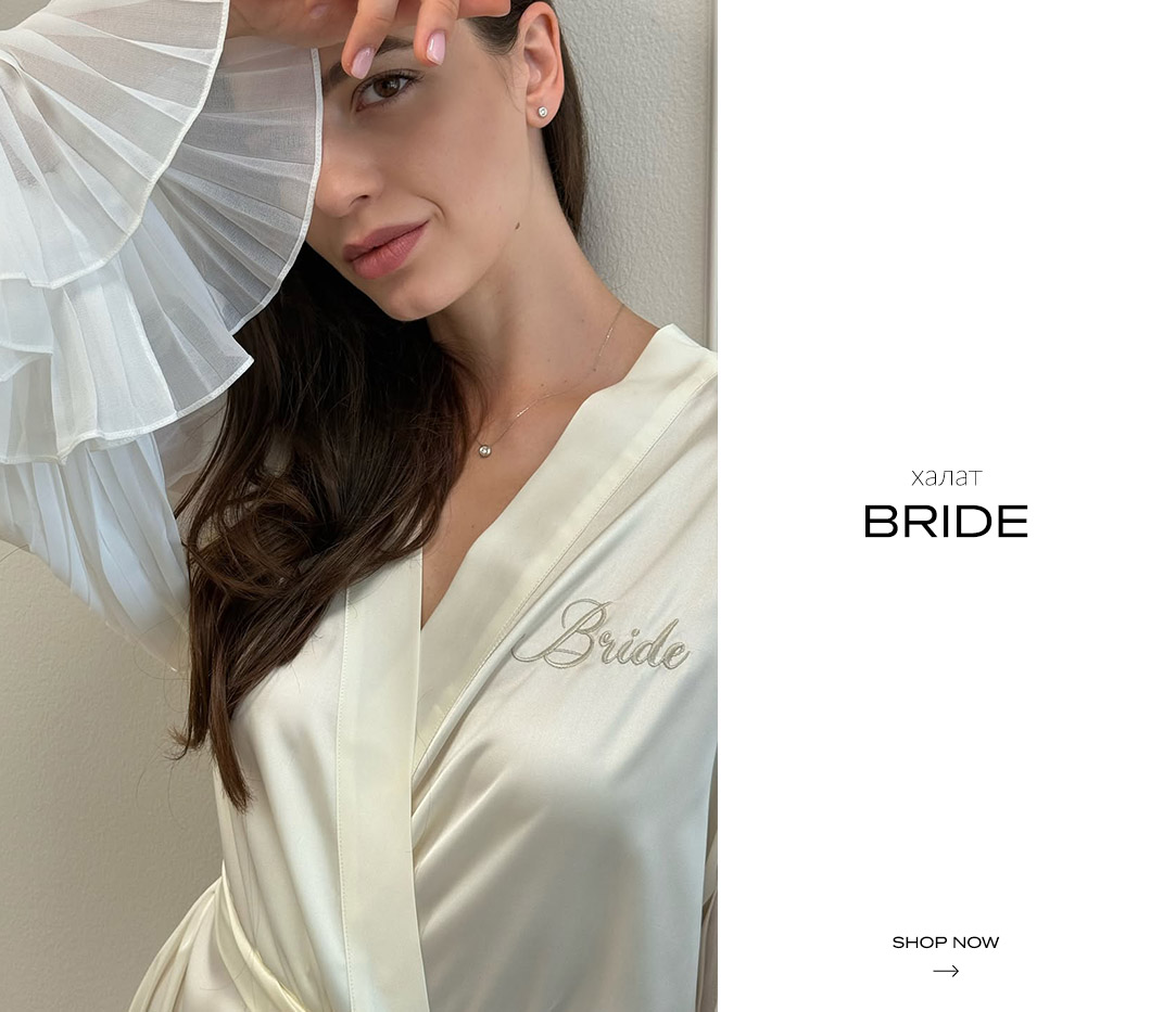 Персонализиран халат BRIDE е създаден да подчертае магията на вашето „Да“. Този булчински халат е истинско бижу за подготовката за сватбения ден (и много сутрини след това). Можете да изберете класическата бродерия Bride или да го персонализирате с вашето име, инициали или важна дума – фин детайл, който превръща халата в съкровен спомен.