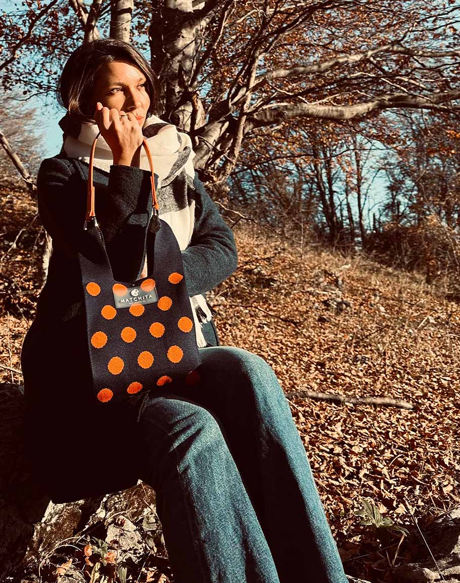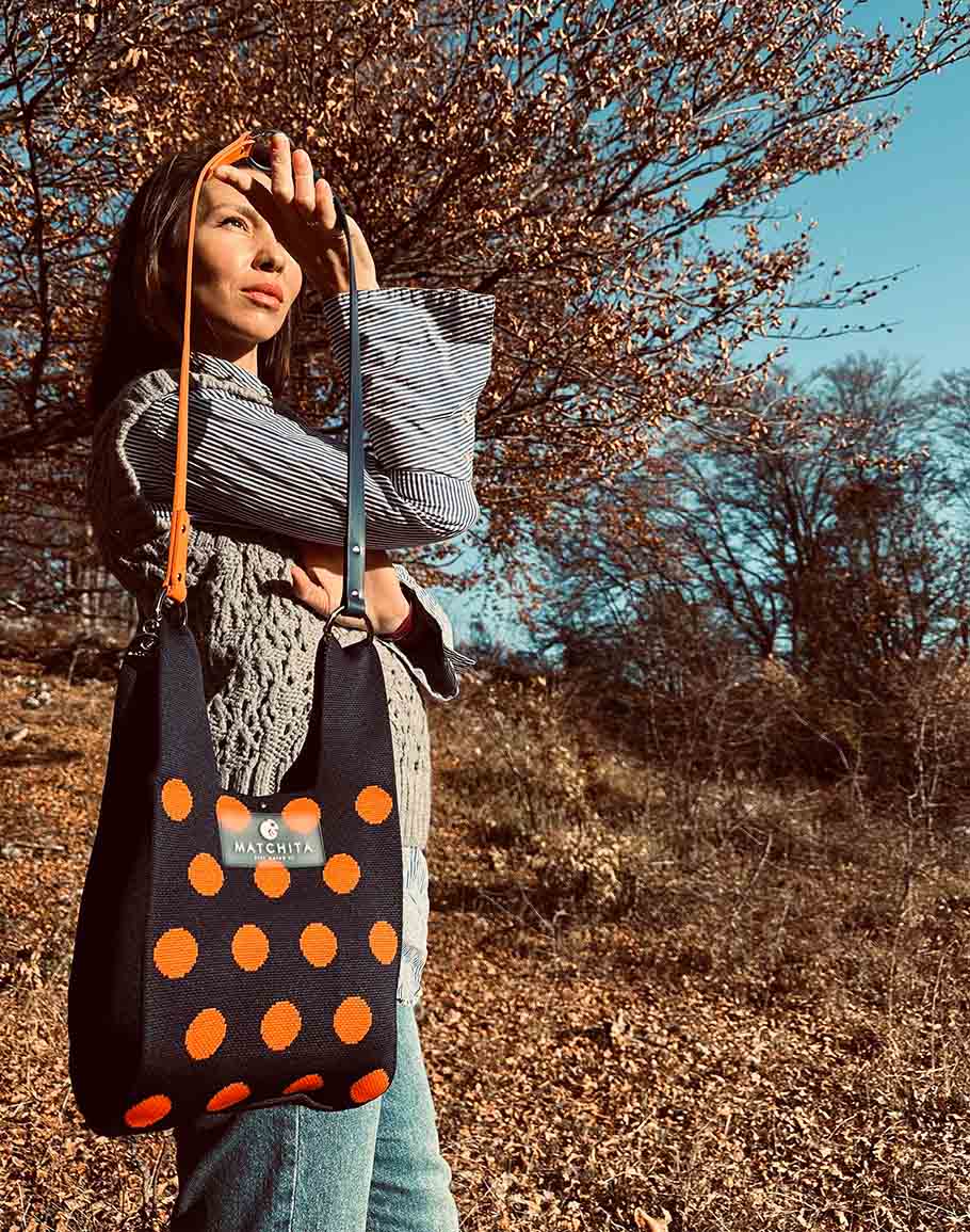 Чанта NAVY BLUE & ORANGE DOTS е смел и енергичен аксесоар, който ще внесе настроение във всеки твой аутфит. Тъмносиният фон на чантата излъчва класическа елегантност, докато ярките оранжеви точки добавят закачлив и модерен акцент. Перфектна за сезона, тази чанта се адаптира към твоя стил – с подходяща MATCHITA strap можеш лесно да промениш визията ѝ от елегантна до непринудена или ярко екстравагантна само с едно движение. Чантата е с едно отделение и се закопчава чрез елегантен бижу магнит. Благодарение на тъканата структура на полиестера, чантата увеличава видимо обема си при напълване, осигурявайки повече пространство от очакваното. Дамската чанта се предлага с различни дръжки, а изборът е ваш - оранжев, червен, горчица, тъмносин и сив.