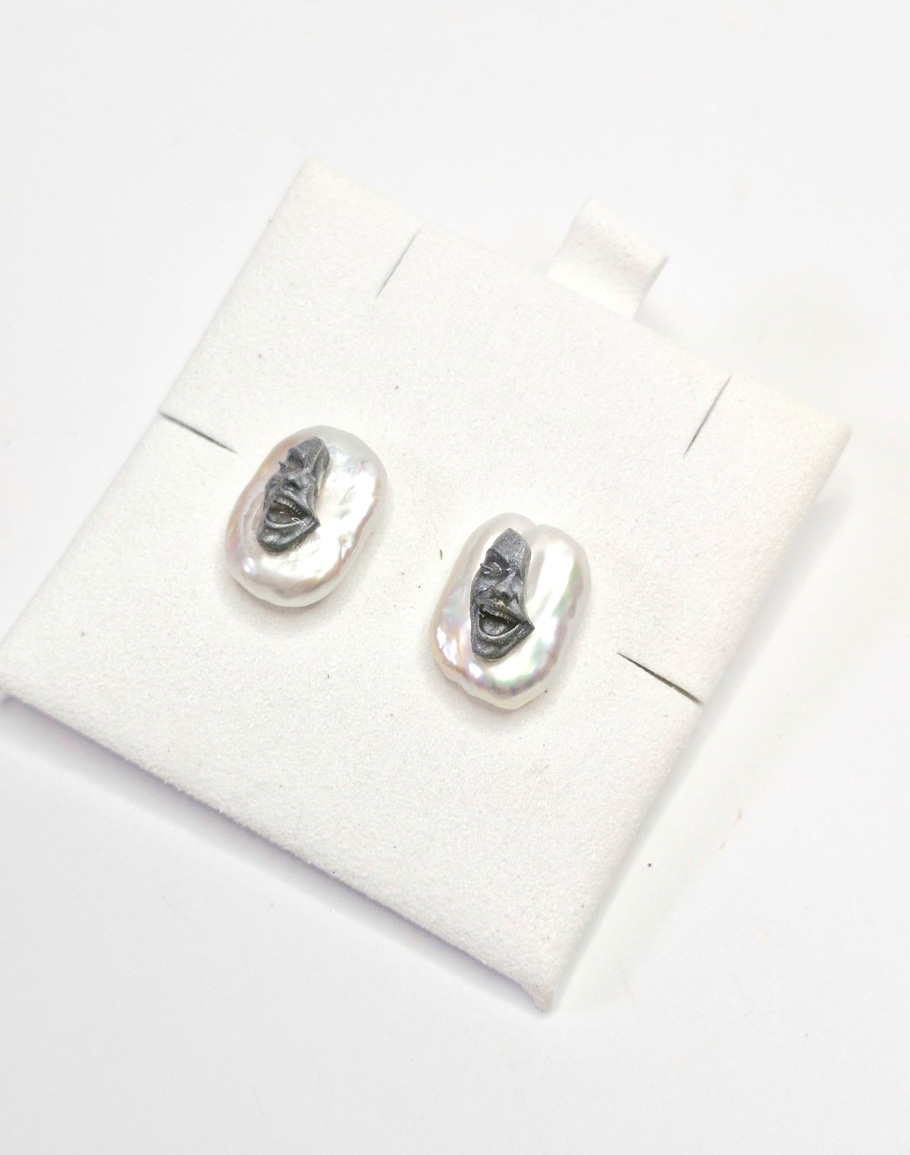 Обеци SMILE SILVER PEARL са елегантни сребристи усмивки върху перлен камък. Сребристите обеци съчетават изчистена, елегантна форма и ексцентричен детайл, което ги превръща в бижу, което говори за вашата индивидуалност. Обеците са ръчно изработени и уникални, както и емоцията, която носят. Обеците подчертават вашата индивидуалност, съчетават се лесно както с ежедневен стил, така и с елегантна визия за специален повод. С тях ще се чувствате уверени, стилни и винаги различни. Дамските сребристи обеци лица са перфектни за подарък.