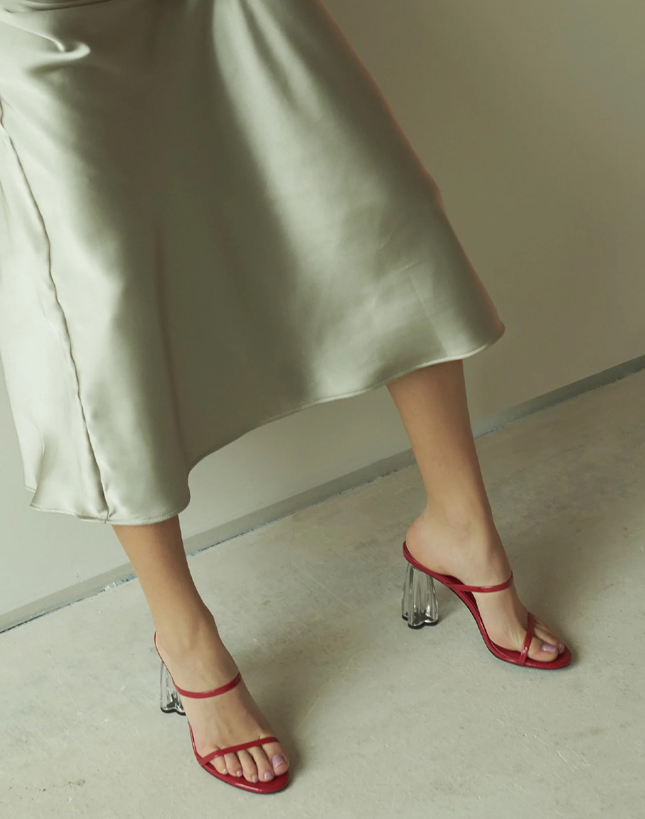 Обувки FIORELLINI GLASS HEEL 95 RED PATENT в оранжев цвят с височина 95 мм, изработени от фина италианска кожа. Червените токчета също така разполагат с „стъклен“ ток, който носи характерната форма на ATANA в основата си - геометричния флорален мотив. Според фолклора, тази форма символизира компаса на живота, тъй като сочи към четирите посоки на света. Дебелата, подобна на стъкло текстура на материала наподобява винтидж парфюмни бутилки, изработени от италиански майстори. Вградените възглавнички от алое и плътният ток осигуряват стабилност и комфорт при носене на тези луксозни червени токчета. Независимо дали ги комбинирате с елегантна вечерна визия или със стилен дневен тоалет, обувки FIORELLINI GLASS HEEL 95 RED PATENT придават изтънченост и женственост на всяка стъпка. Фините детайли и прецизната изработка подчертават луксозния характер на модела, а стабилната конструкция гарантира увереност и комфорт през целия ден. Това е обувка, създадена за жени, които ценят безкомпромисния стил, качеството и усещането за лекота. Дамските червени токчета се предлагат в размери 35, 36, 37, 38, 39, 40 и 41.