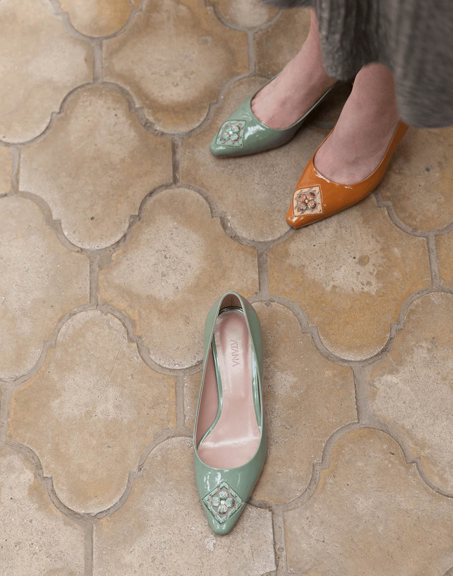 Дизайнерски обувки на българския бранд ATANA. Atana означава вечни, качествени модели с елегантност. Творенията на са вдъхновени от традиционната занаятчийска бродерия от миналото и получават свеж нов живот през творческите лещи на техните дизайнери. Всяка шевица е символична и има история, разказана от нейната техника, композиция и цвят. ATANA изработва обувки ръчно с помощта на кожа, велур, мрежа или комбинация от горните, за да претендират за по-дръзко присъствие. Класическите форми и богатите текстури правят вашите ATANA много повече от моден артикул за един сезон. Техните подметки са вградени с немски технологичен мемори гел, разработен за обувки на танцьори за лесно носене и комфорт.
