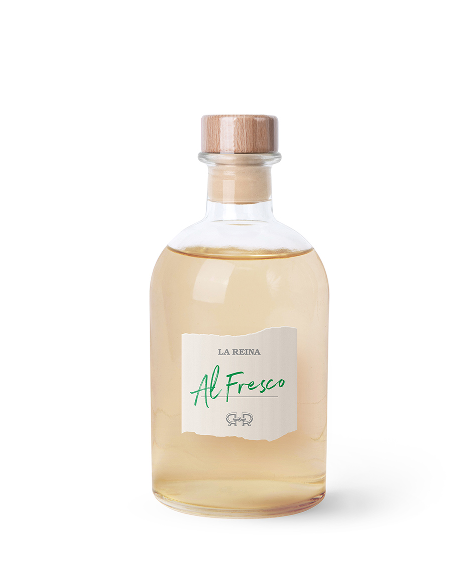 Парфюмен дифузер AL FRESCO 250 мл е свеж въздух, затворен в бутилка. Вдъхновен от аромата на зелени растения след буря, сутрешни разходки по прясно окосена трева и безгрижно лято – микс от мента, билки и цветя, който ще освежи всяко пространство. Парфюмен дифузер AL FRESCO е идеалният начин да поддържате постоянен и приятен аромат в дома или офиса си. С помощта на абсорбиращи стикове, поставени във флакона, се разпръсква нежен и деликатен аромат в помещението. Чрез добавяне или премахване на стикове можете лесно да регулирате интензитета на аромата според предпочитанията си. За да се усеща наситен и свеж аромат, е нужно клечките да бъдат обръщани. Парфюмният дифузер е с размер 250 мл и с продължителност на аромата около 10 месеца след отваряне.