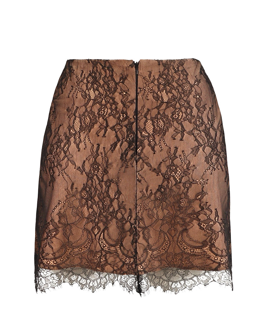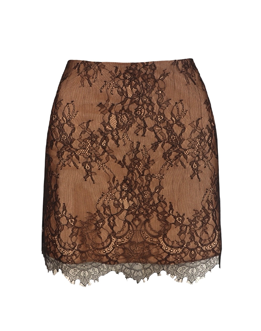 Пола SECRET ALLURE съчетава нежността на телесната основа и драматичността на черната френска дантела. Късата пола има ефект “втора кожа” – женствена, смела и изящна. Полата е изработена фина френска дантела с еластична основа. Материя, която приляга перфектно и не прозира в горната част. Полата е с висока талия за издължаване на силуета. Моделът има дантелен подгъв с деликатно “скалопе” очертание. Скрит цип отзад. Късата дантелена пола е идеална с топ от дантела, риза, боди или плетиво. Полата е перфектна за вечерни излизания, парти визии и празници. Комбинирайте с токчета за максимална елегантност или с ботуши за модерен контраст. Дамската къса дантелена пола се предлага в размери XS, S и M.