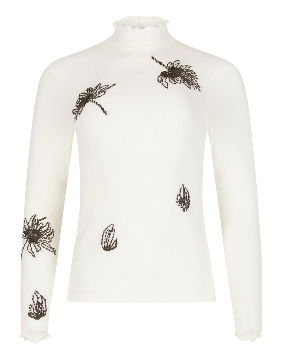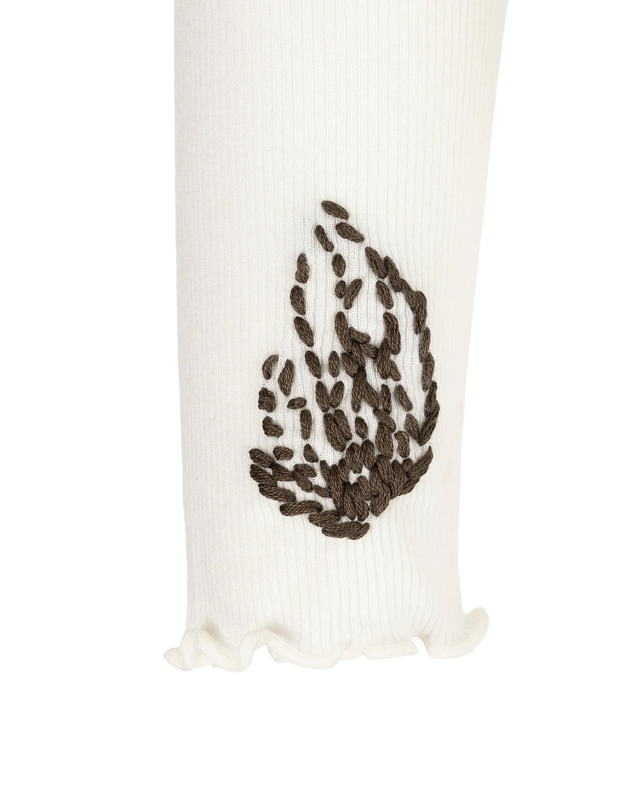 детайли: авторска бродерия, поло яка с къдри, ръкави с къдри