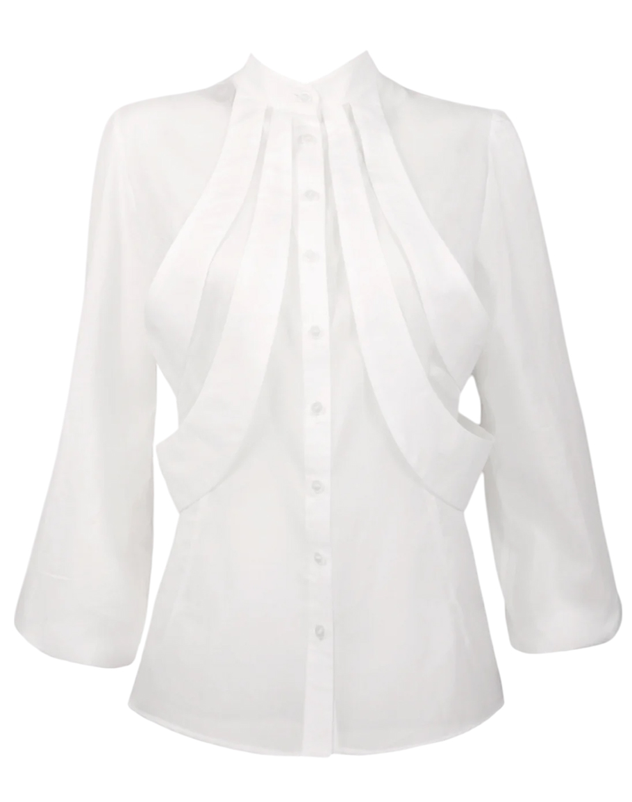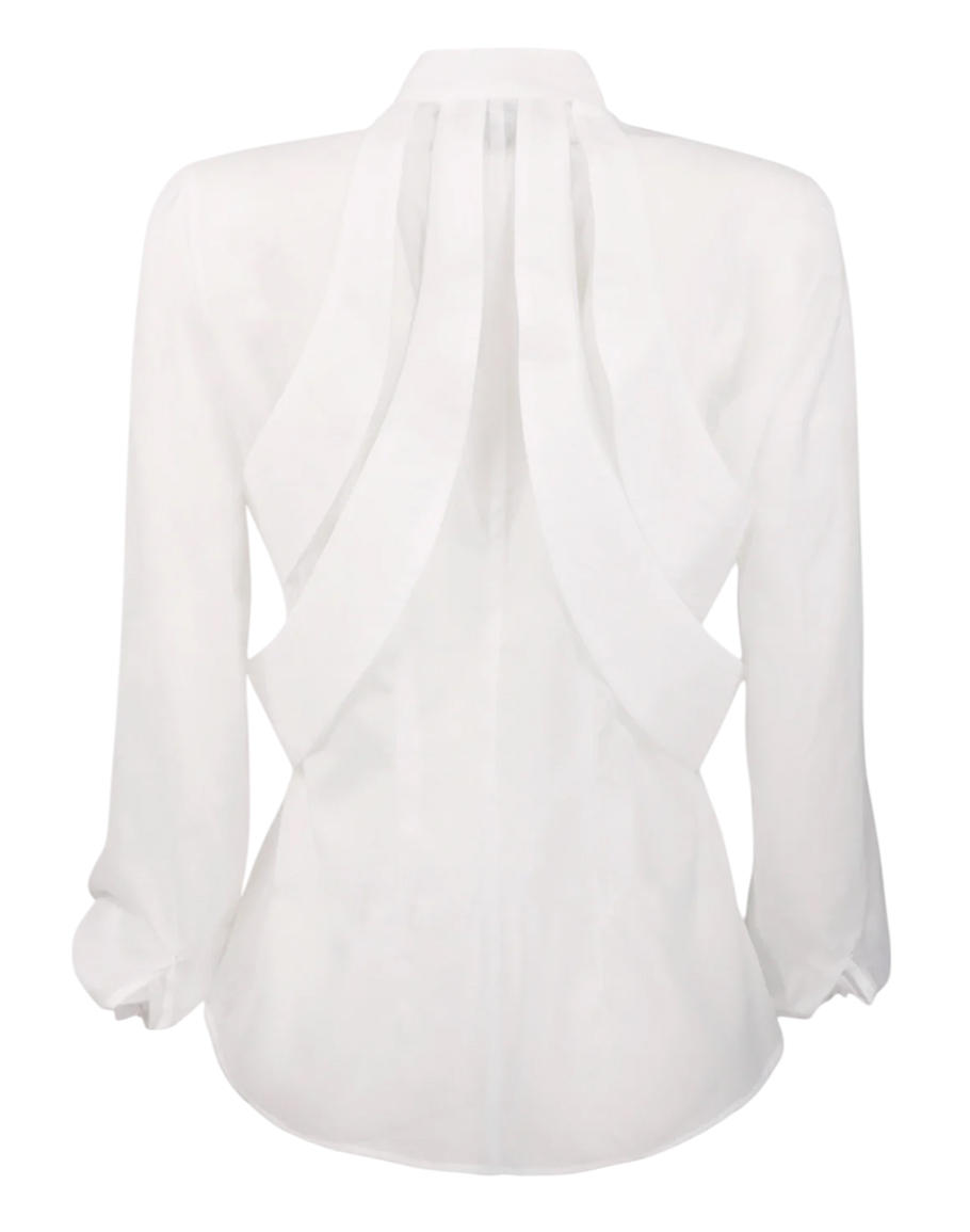 Риза CLASSIC TAPE в бял цвят изработена от памук с вискоза. Бялата риза е с вталена кройка, маншчет и копчета. Моделът е с лека прозрачност и детайли, които преминават отпред до задната част и създават една артистична визия. Ризата е перфектен избор за ежедневни и вечерни моменти. За една MIJEL визия комбинирайте с другите модели на марката. Дамската бяла риза се предлага в размери XS/S и M/L.