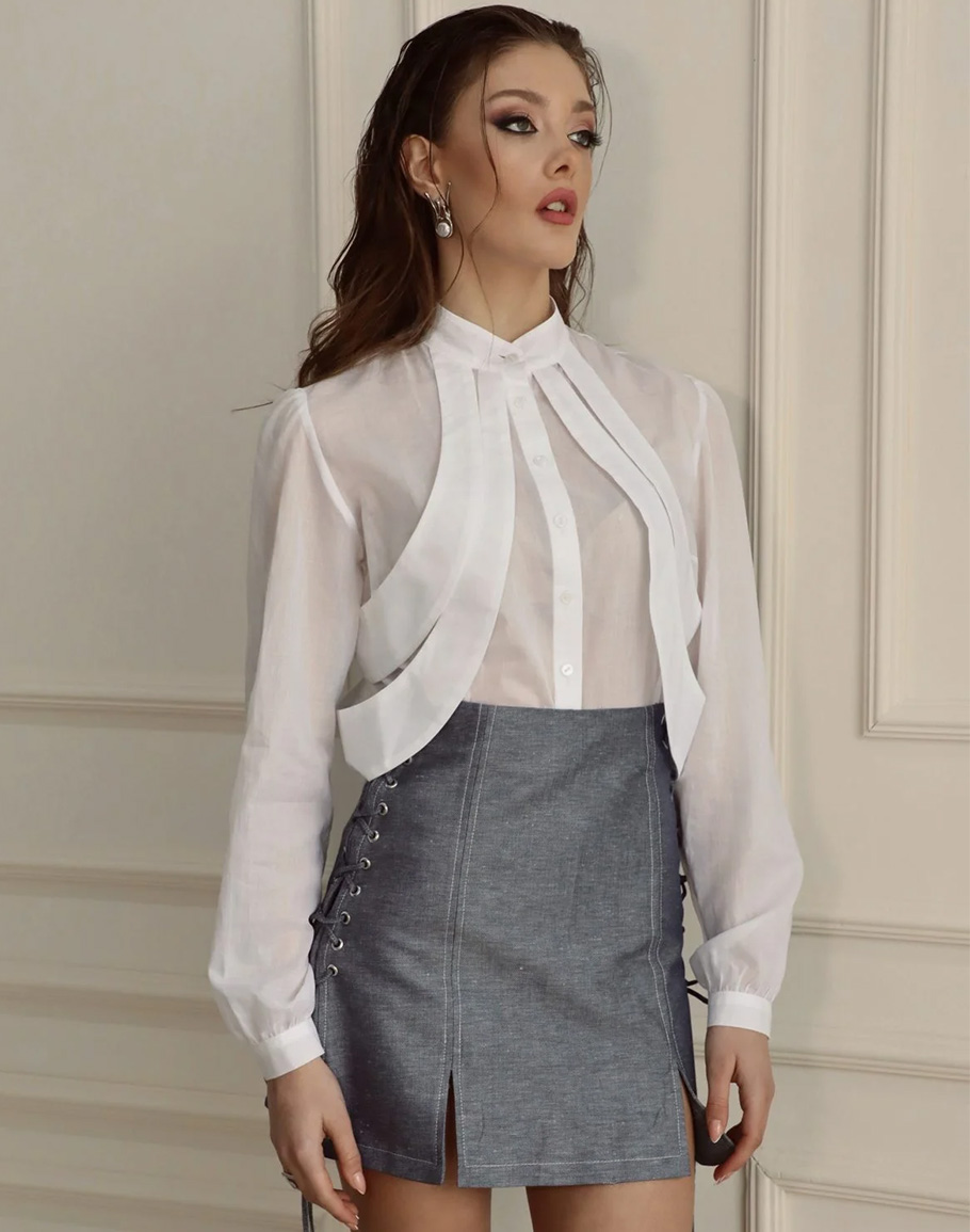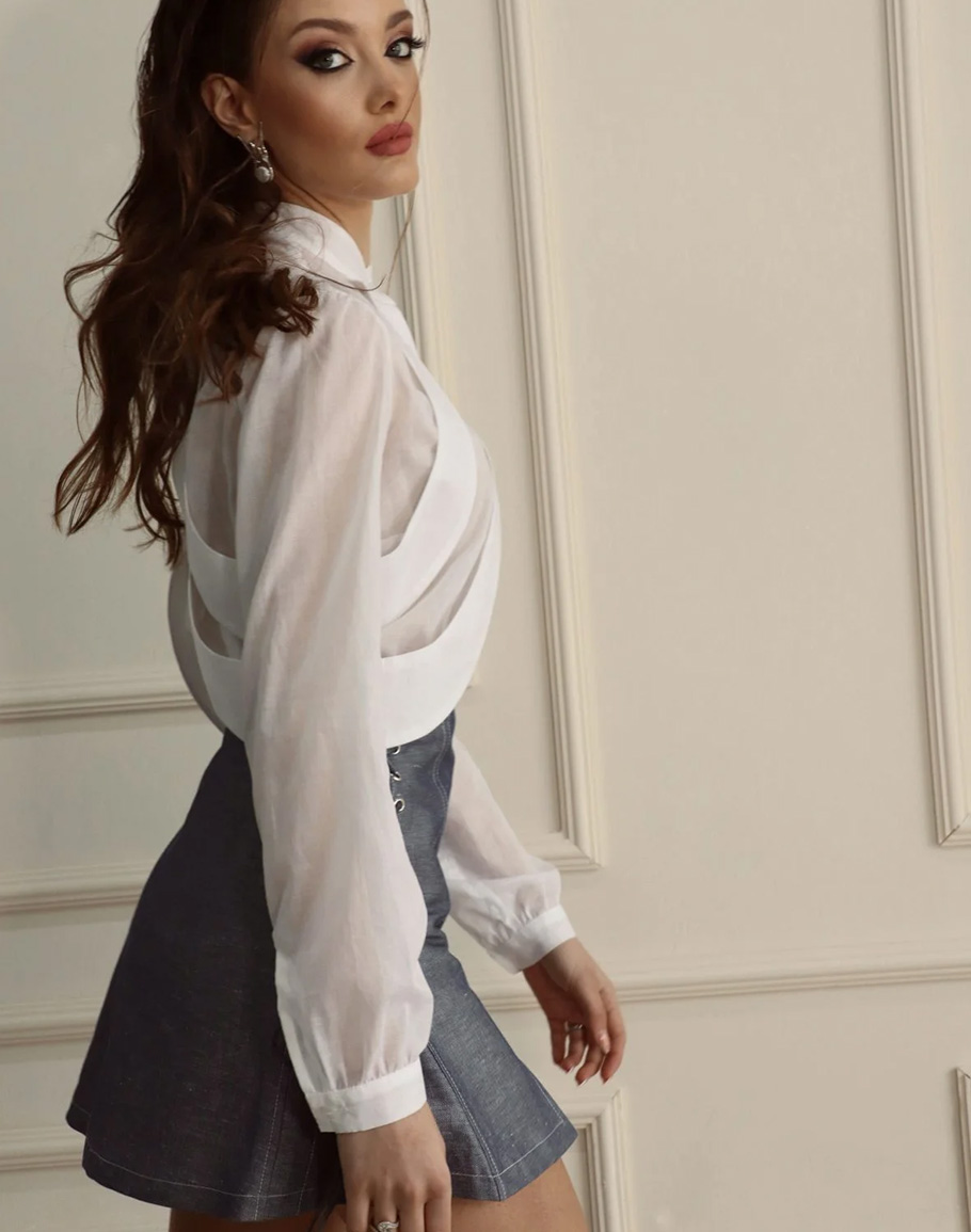Дизайнерска риза на българския бранд MIJEL. MIJEL е моден бранд, създаден с мисията да вдъхновява жените да се чувстват уверени, изтънчени и неповторими. Всяка колекция е израз на внимателно подбран стил, внимание към детайла и любов към елегантността. Марката вярва, че дрехата не е просто дреха, а преживяване — начин да изразите своята сила, чувственост и индивидуалност. Затова всеки модел е изработен с прецизност, от висококачествени материи, в малки серии, така че всяка жена да се чувства специална и единствена. MIJEL създава дрехи за съвременната жена — смела, уверена и елегантна, която обича да живее красиво и да оставя следа. MIJEL е отношение към себе си, към живота и към красотата във всеки миг.
