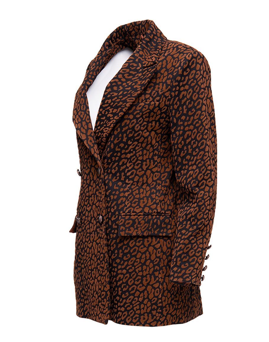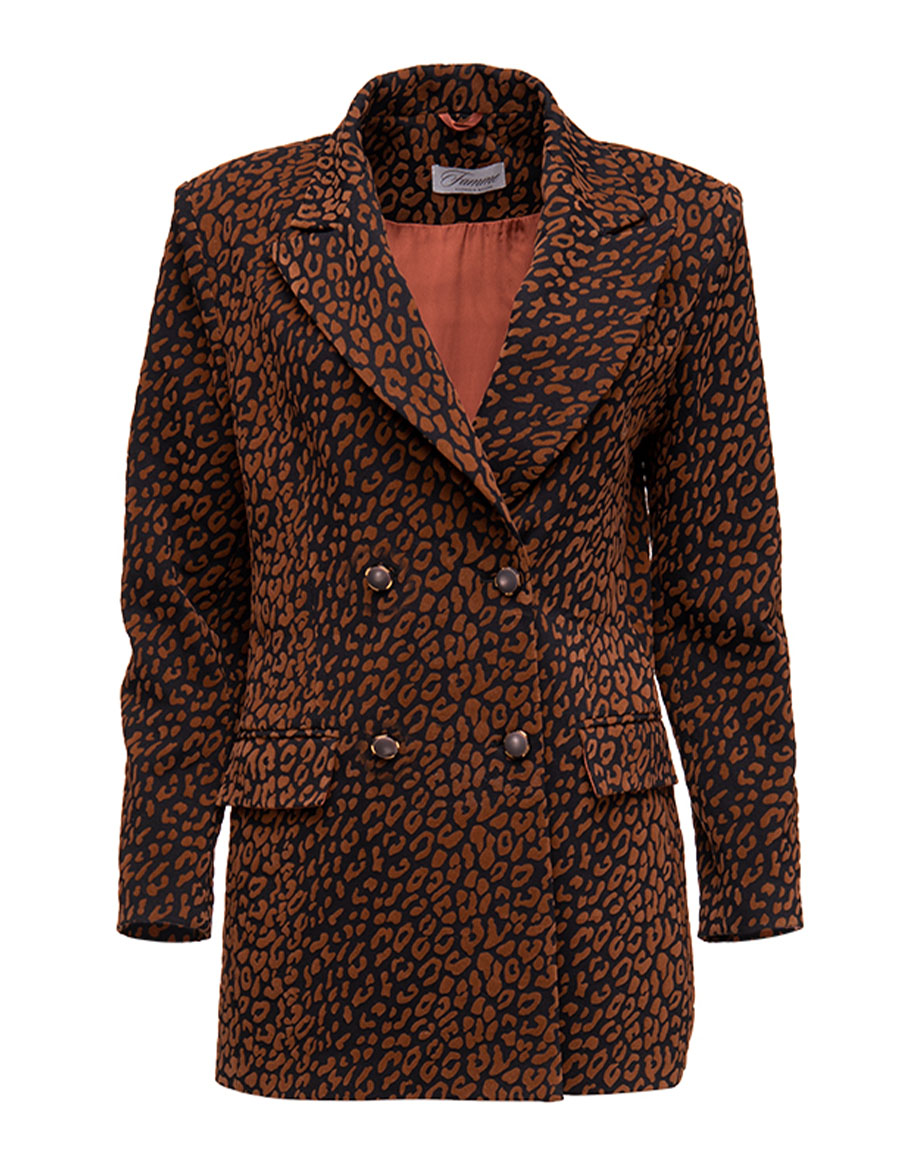 Сако WILD ELEGANCE с леопардов принт, създадено за жени, които обичат да бъдат в центъра на вниманието. Съчетавайки елегантност и смелост, това леопардово кафяво сако се отличава с двуредно закопчаване, структурирана кройка и лека подплата за максимален комфорт. Топлите кафяви и черни нюанси придават характер и подчертават индивидуалността ви. Дамското кафяво леопардово сако се предлага в размери S, M, L и XL.