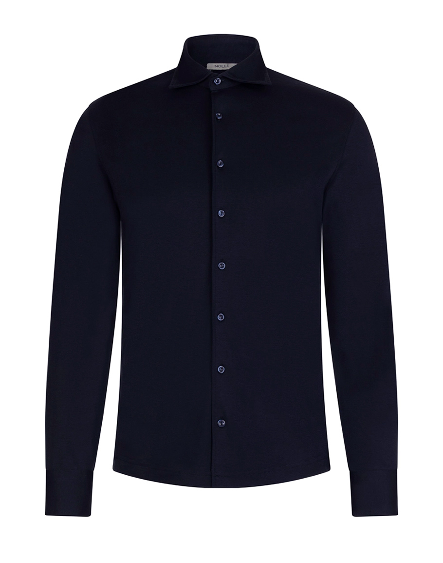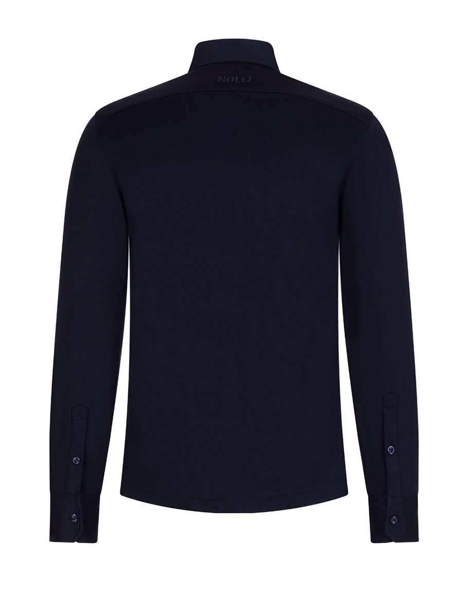 Мъжка трикотажна риза STEVEN NAVY в тъмносин цвят изработена от 100% висококачествен памук интерлок с брилянтен финиш, натурална и дишаща материя. Еластичната материя на тъмносинята мъжка риза гарантира комфорт и свобода при носене. Уникалната разработка на плата съчетава комфорт и стил в едно. Тъмносинята риза е перфектна за мъже, които ценят класическата и стилна визия, без да правят компромис с удобството. Трикотажната мъжка риза е нов прочит на елегатното облекло. Отличителен елемент е бродираното лого на гърба. Моделът е с regular силует, с дълъг ръкав, ризарска яка и маншети. Всички елементи допринасят за класическата визия на продукта. Мъжката риза е идеална за различни поводи – от офис облекло до елегантни подови и събития. Мъжката трикотажна тъмносиня риза се предлага в размери S, M, L, XL и 2XL.