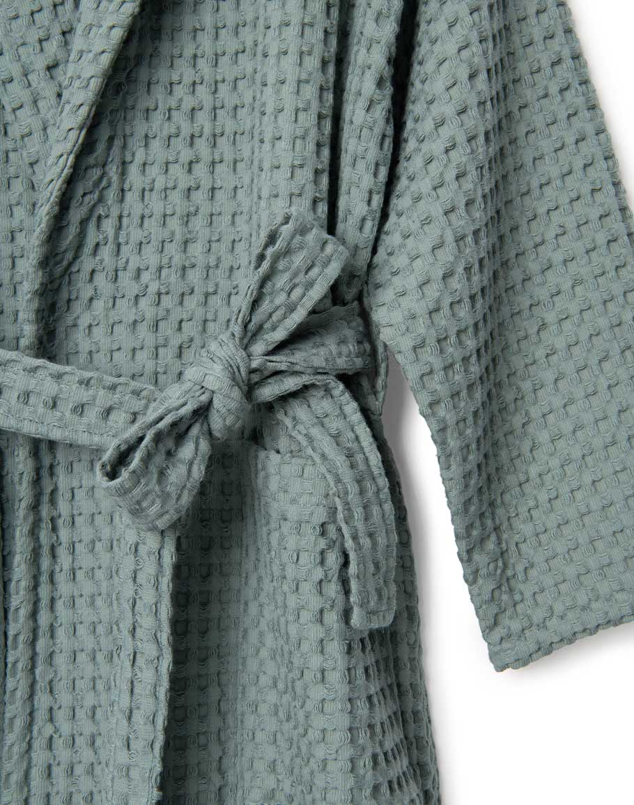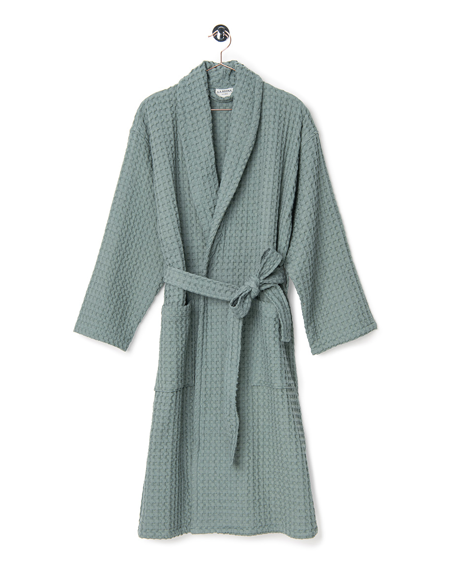 Халат WAFFLE GREEN в зелен цвят изработен от висококачествен памук. Добавете текстура към рутината си с ексклузивния зелен халат с вафлен дизайн, проектиран да намали свиването и да запази формата си след пране и носене. Леката и уникална плетка тип „пчелна пита“ на този халат улавя и абсорбира водата бързо, за бързо и ефикасно съхнене. Зеленият халат има колан за удобно регулиране на талията, практични джобове и качулка за допълнителен комфорт и топлина. Дамският вафлен зелен халат се предлага в размери S/M, L/XL и XXL.