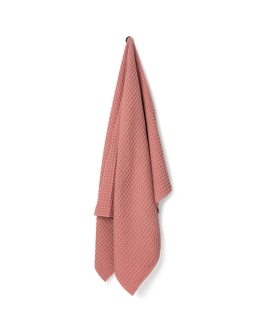 Кърпа за баня WAFFLE BLUSH 90X160 в цвят пудра изработена от 100% висококачествен памук. Голямата розова кърпа за баня е с ексклузивен дизайн, който намалява свиването, без да прави компромис с ефективността на сушене и абсорбцията. Добавете текстура към рутината си с ексклузивната розова кърпа с вафлен дизайн, проектиран да намали свиването и да запази формата си след пране и употреба. Леката и уникална плетка тип „пчелна пита“ на тази голяма розова кърпа да улавя и абсорбира водата бързо, за бързо и ефикасно съхнене. Голямата вафлена розова кърпа е с размери 90X160 cm, плътен 300 GSM и със сетифициран Oeko-Tex® стандарт.