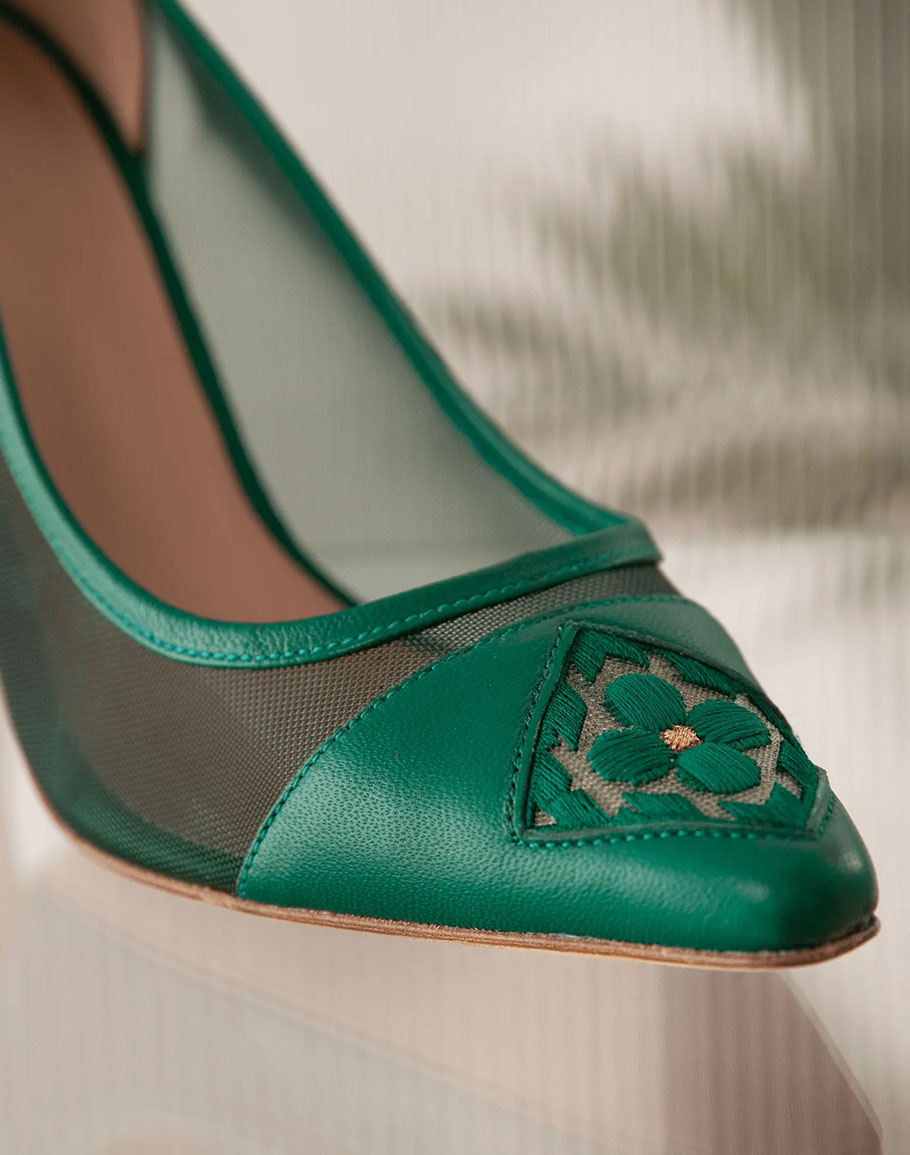 Обувки FIORELLINI PUMP MESH 85 DARK GREEN в неустоим тъмнозелен нюанс внасят стил и елегантност на 85-милиметров ток с класическа форма чарлстон. Всички обувки Fiorellini са с сложна флорална бродерия, разработена в най-добрите бродерийни къщи в Италия, и имат вградени възглавнички от алое за комфорт. Независимо дали ги комбинирате с елегантна вечерна визия или със стилен дневен тоалет, обувки FIORELLINI PUMP MESH 85 DARK GREEN придават изтънченост и женственост на всяка стъпка. Фините детайли и прецизната изработка подчертават луксозния характер на модела, а стабилната конструкция гарантира увереност и комфорт през целия ден. Това е обувка, създадена за жени, които ценят безкомпромисния стил, качеството и усещането за лекота. Дамските червени токчета се предлагат в размери 35, 36, 37, 38, 39, 40 и 41.