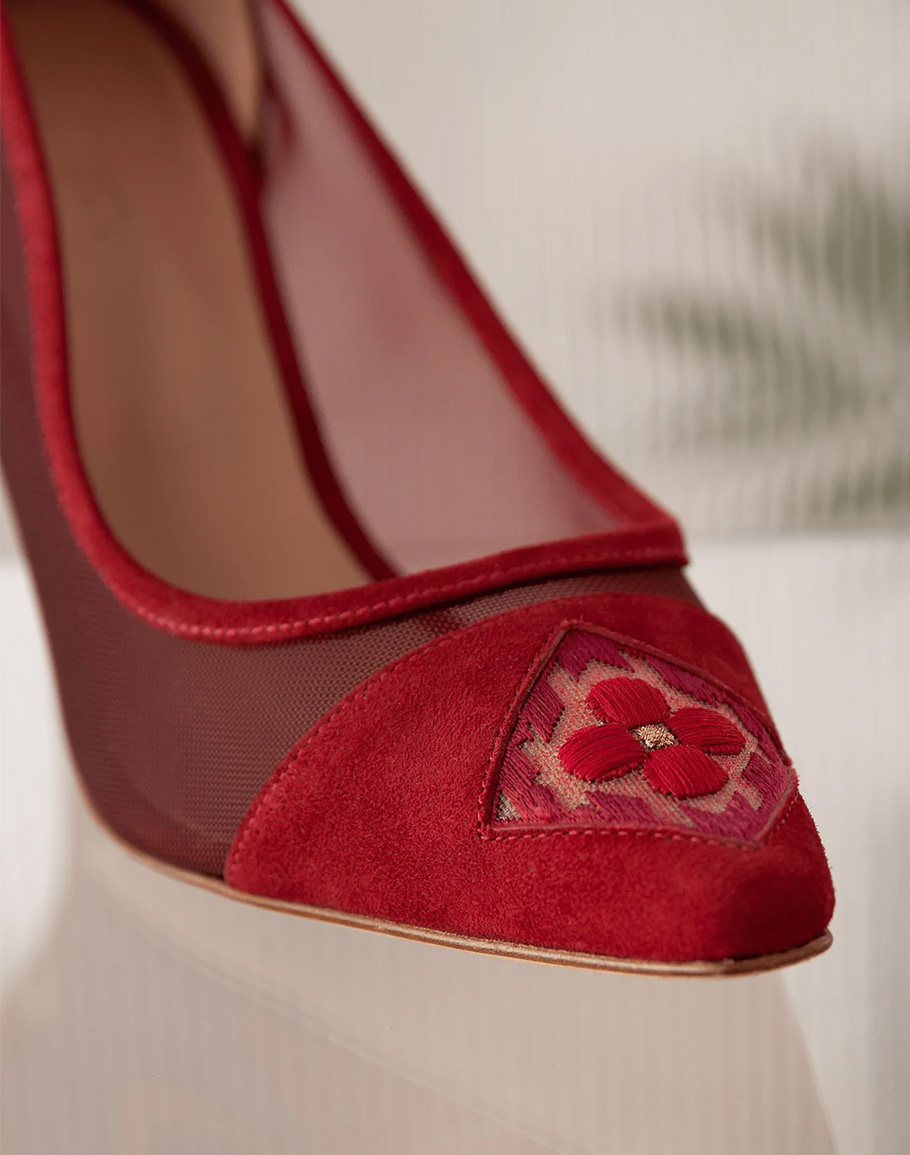 Обувки FIORELLINI PUMP MESH 85 DARK RED в неустоим тъмночервен нюанс внасят стил и елегантност на ток от 85 мм с класическа форма чарлстон. Всички обувки Fiorellini са с богата флорална бродерия, разработена в най-добрите бродерийни къщи в Италия, и имат вградени възглавнички от алое за комфорт. Независимо дали ги комбинирате с елегантна вечерна визия или със стилен дневен тоалет, обувки FIORELLINI PUMP MESH 85 DARK RED придават изтънченост и женственост на всяка стъпка. Фините детайли и прецизната изработка подчертават луксозния характер на модела, а стабилната конструкция гарантира увереност и комфорт през целия ден. Това е обувка, създадена за жени, които ценят безкомпромисния стил, качеството и усещането за лекота. Дамските червени токчета се предлагат в размери 35, 36, 37, 38, 39, 40 и 41.