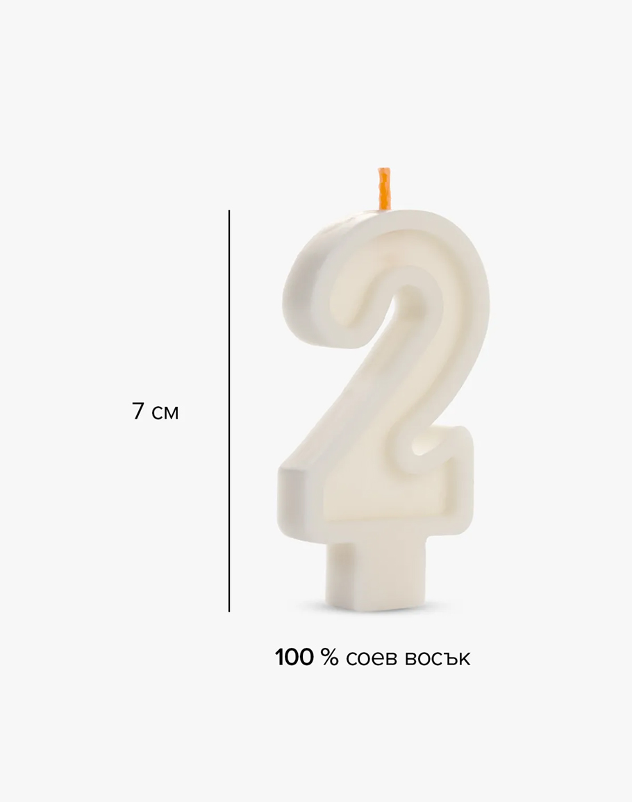 Соева свещ за торта 2 ръчно изработена от соев восък с цветен фитил от 100% памук. Изберете тази натурална соева свещ да отпразнувате рожден ден или годишнина. Времето на горене е 30 повторения на „Happy Birthday“ или около 15 минути. Свещта се предлага в индивидуална крафт кутийка, което я прави подходяща и за подарък.