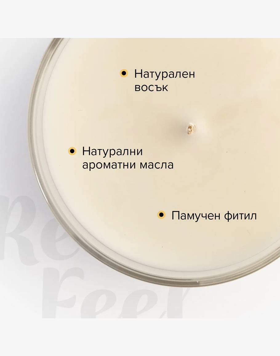 Свещ REFEEL PURE VANILLA с аромат на нежна ванилова прегръдка. Свещта е с ухание на натурална ванилия, извлечена от кората на норвежки бор. Топъл и богат аромат с нотка на сладост. Свещта е изработена от натурален соев восък, който не отделя сажди и не замърсява въздуха в вашия дом. Свещта е част от първата колекция на марката refillable – създадена да даде по-дълъг живот на всеки съд и да намали излишните отпадъци. Пълнителите са лесни за поставяне и идват в различни аромати. По-достъпно за вас, по-щадящо за планетата! Свещта идва без кутия – защото всички знаем къде отива тя след 2 минути: право в кошчето за боклук. 160 CANDLES вярват, че това е малка стъпка към по-малко отпадъци и по-устойчиво потребление. Свещта е обогатена с премиум ароматни масла, сертифицирани в съответствие с Международната асоциация за аромати (IFRA).