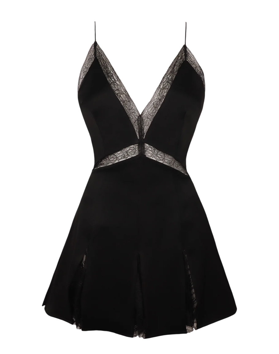 Рокля LUXURY LACE&SATIN I в черен цвят изработена от полиестер с хастар. Елегантната черна рокля е с къса дължина, декорирана с красива нежна дантела, тънки дълги презрамки и V-образно деколте. Моделът се закопчава с цип на гърба. Роклята е чудесен избор за специален момент, парти и кокейлни поводи. Добавете бижута за една съръшенна шик визия. Дамската черна рокля с дантела се предлага в размери XS, S и M.