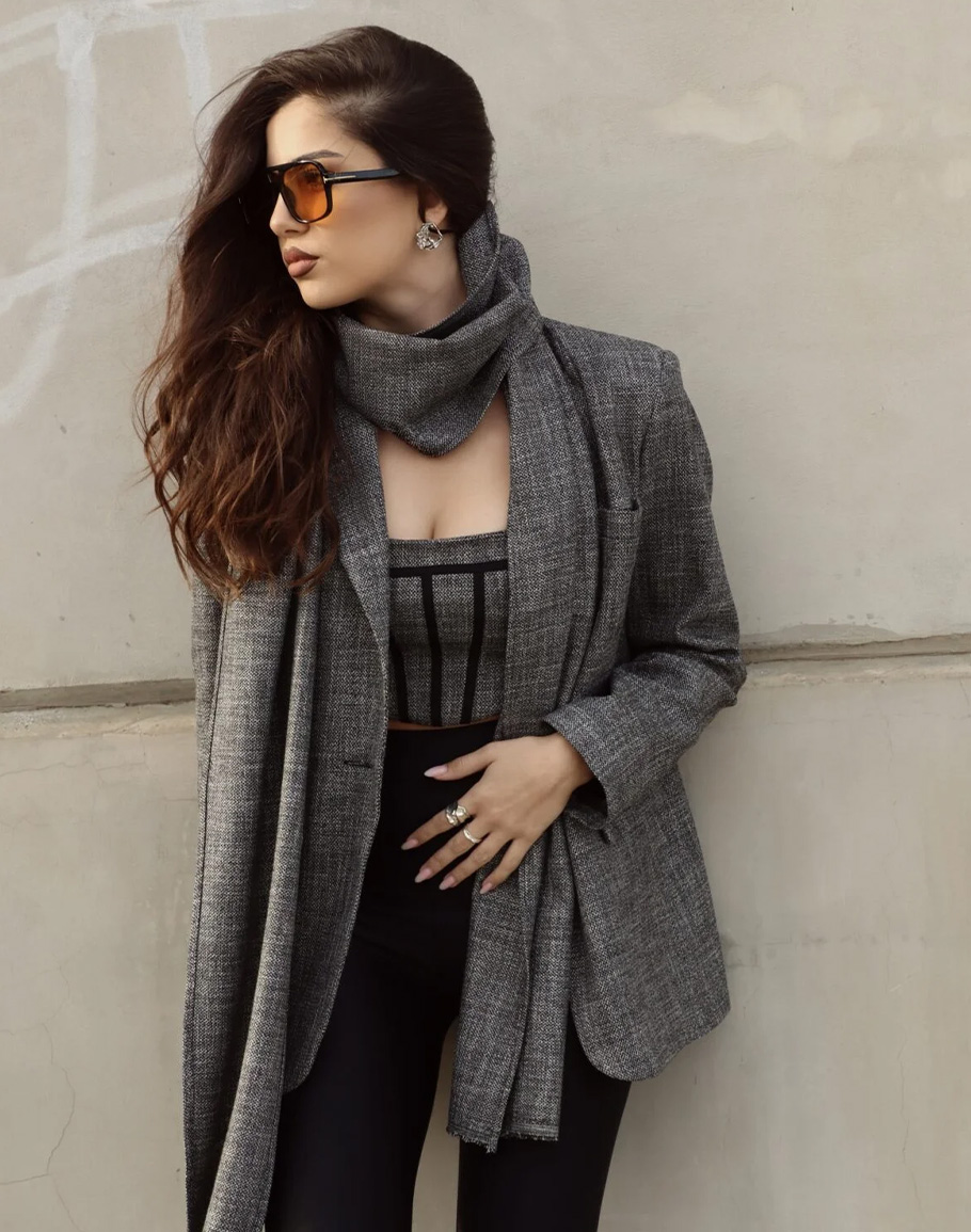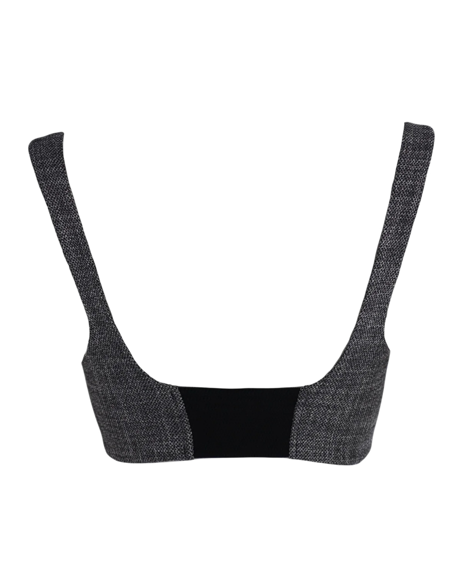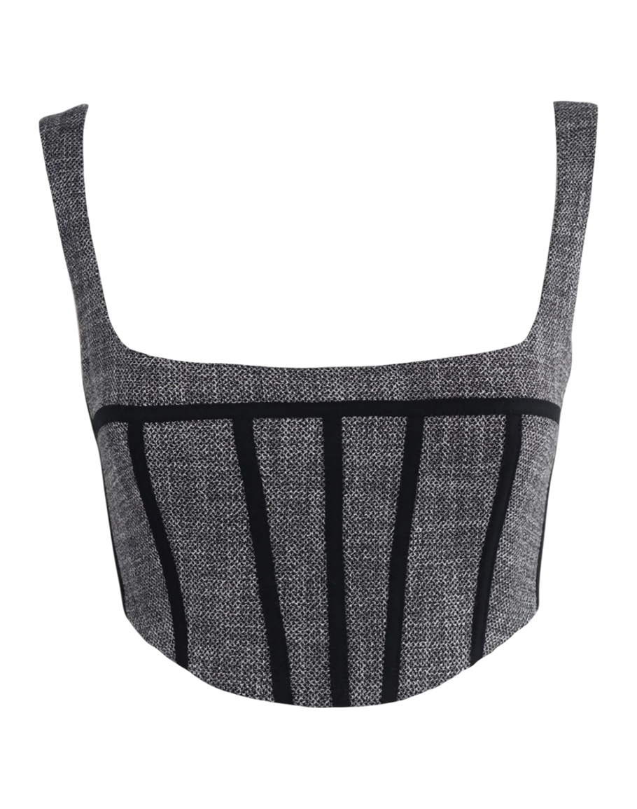 Топ SCULPTED LINES в сив цвят с корсетен силует – изчистен, елегантен и подчертаващ женствената линия на тялото. Сивият къс топ съчетава структура и мекота, като оформя бюста и талията без да стяга. Сивият топ е изработен от стегната, но еластична структурирана тъкан. Комфортна и дишаща, запазва формата си при носене. Моделът е със скулптуриран силует с корсетен ефект, контрастни черни ленти, които издължават тялото и широки презрамки за стабилност и комфорт. Закопчаване с цип отзад за лесно обличане. Сивият кроп топ може да се носи както самостоятелно, така и под сако. За една MIJEL визия комбинирайте с останалите модели на марката. Дамският сив къс топ се предлага в размери XS, S и M.