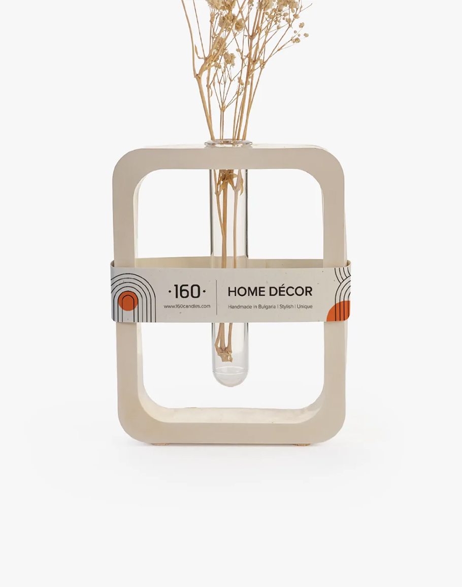 Ваза RECTANGLE в красив бежов цвят, който е перфектен за всяко пространство. Към вазата има съд, в който можете да налеете вода и да поставите живи цветя. Подходяща и за сухи. Вазата е изработена от Jesmonite – гипсов материал на водна основа, който е безопасен за вас и природата: