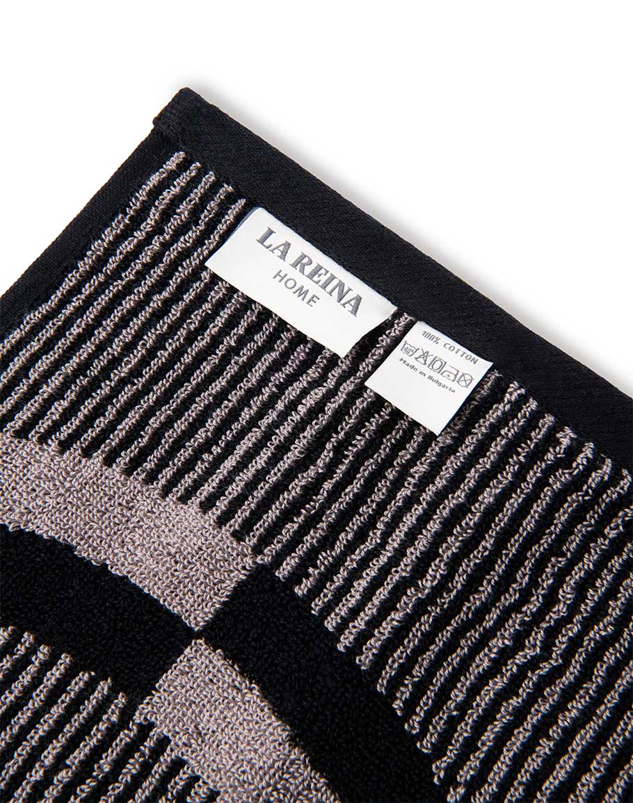 Дизайнерска кърпа на българския бранд LA REINA. LA REINA е премиум бранд за домашен текстил и аромати, посветен на създаването на висококачествени, елегантни и устойчиви продукти. Вдъхновени от красотата на детайла и усещането за комфорт, брандът предлага внимателно подбрана селекция от хавлии, халати и аромати за дома – създадени, за да превърнат всяко пространство в място на уют и изисканост. Дизайнерските изделия на LA REINA са изработени от първокласни материали, които осигуряват мекота, дълготрайност и съвършен външен вид. Вярват, че истинският лукс е устойчив, затова залагат на сертифицирани тъкани и екологично отговорни производствени практики. Съчетанието между непреходен дизайн и висше майсторство превръща LA REINA в символ на изтънченост и стил за домовете по целия свят.