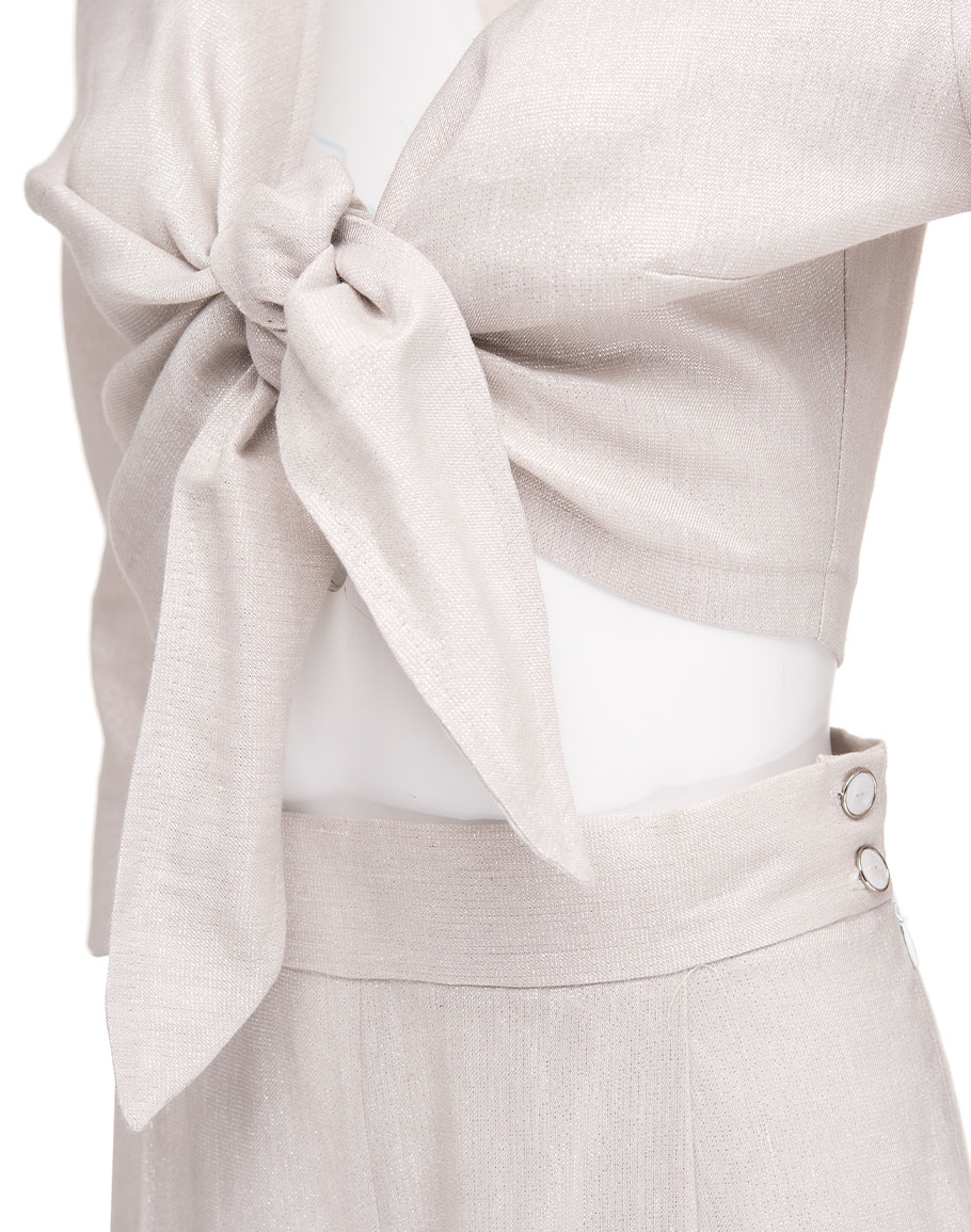 детайли: панталон с висока талия, топ със завръзване