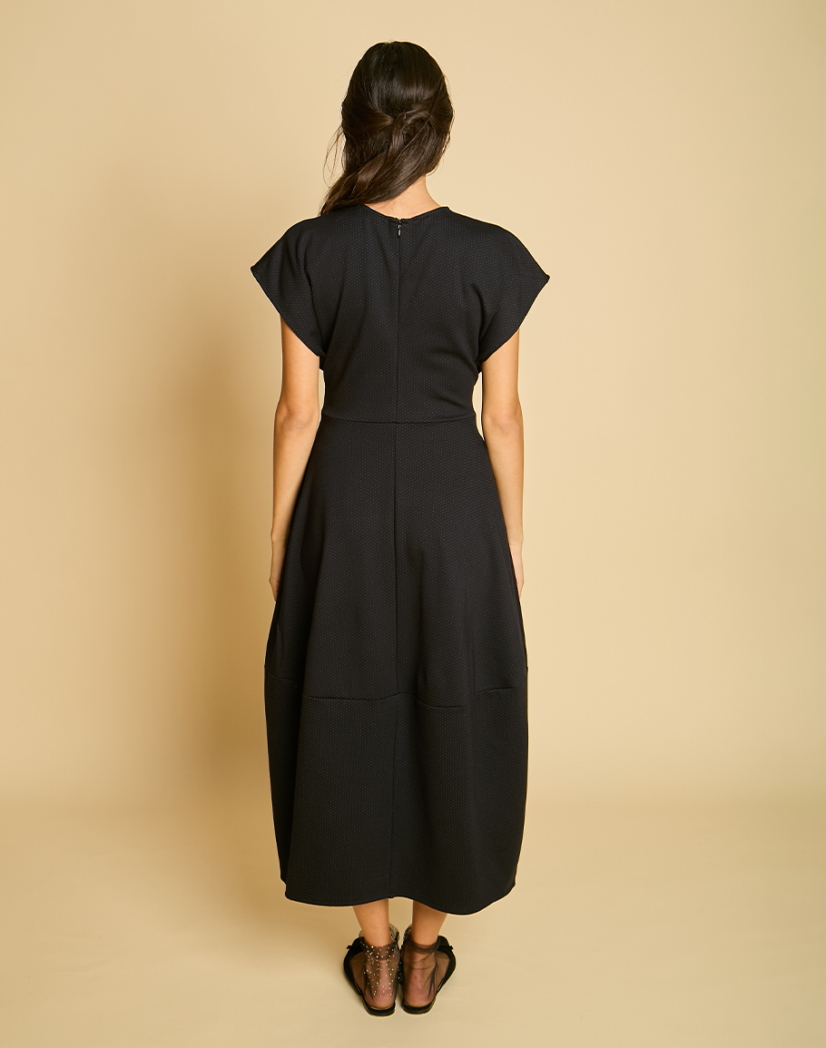Скулптурна памучна миди рокля SAMMY BLACK DOTS