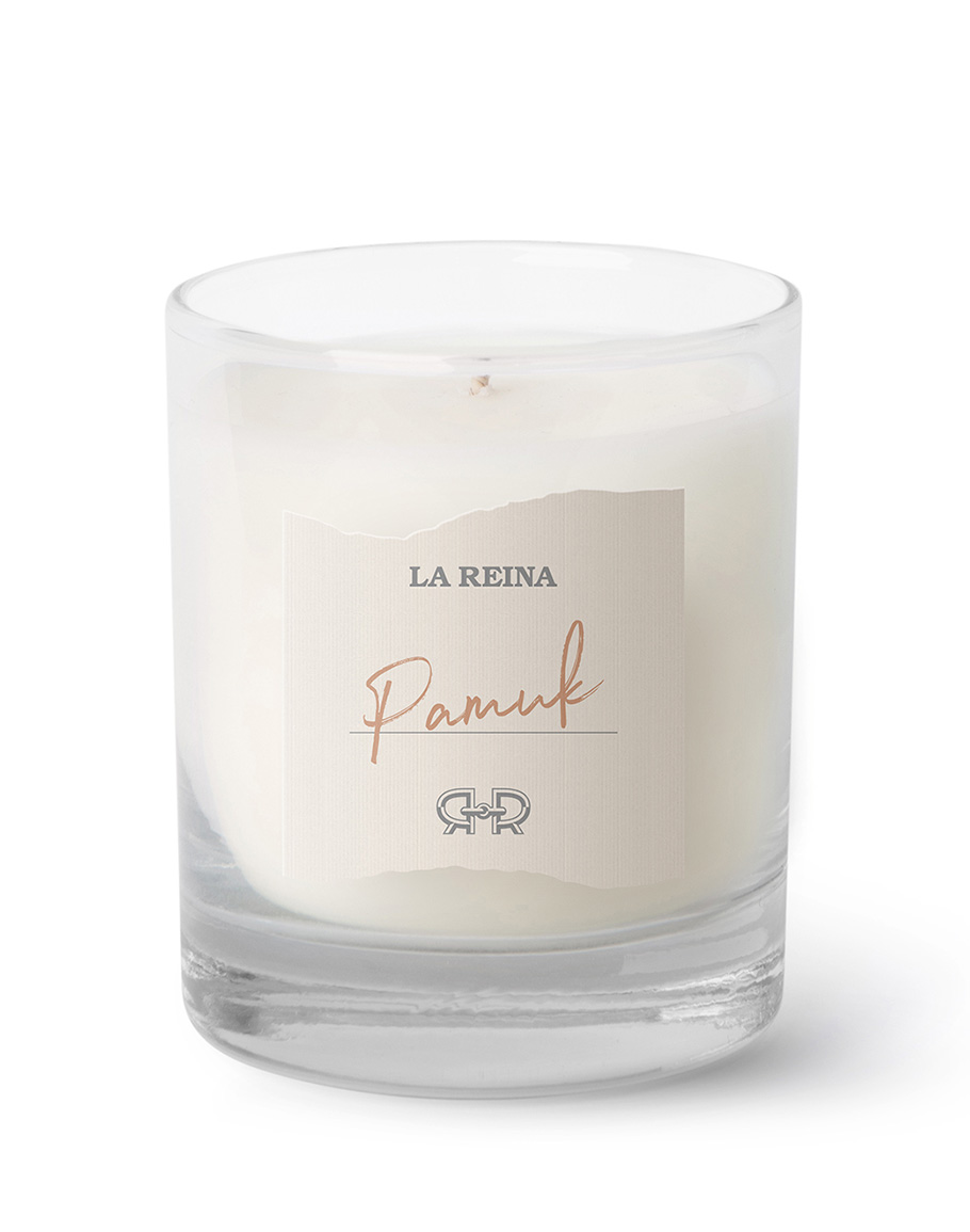 Луксозна свещ на българския бранд LA REINA. LA REINA е премиум бранд за домашен текстил и аромати, посветен на създаването на висококачествени, елегантни и устойчиви продукти. Вдъхновени от красотата на детайла и усещането за комфорт, брандът предлага внимателно подбрана селекция от хавлии, халати и аромати за дома – създадени, за да превърнат всяко пространство в място на уют и изисканост. Дизайнерските изделия на LA REINA са изработени от първокласни материали, които осигуряват мекота, дълготрайност и съвършен външен вид. Вярват, че истинският лукс е устойчив, затова залагат на сертифицирани тъкани и екологично отговорни производствени практики. Съчетанието между непреходен дизайн и висше майсторство превръща LA REINA в символ на изтънченост и стил за домовете по целия свят.