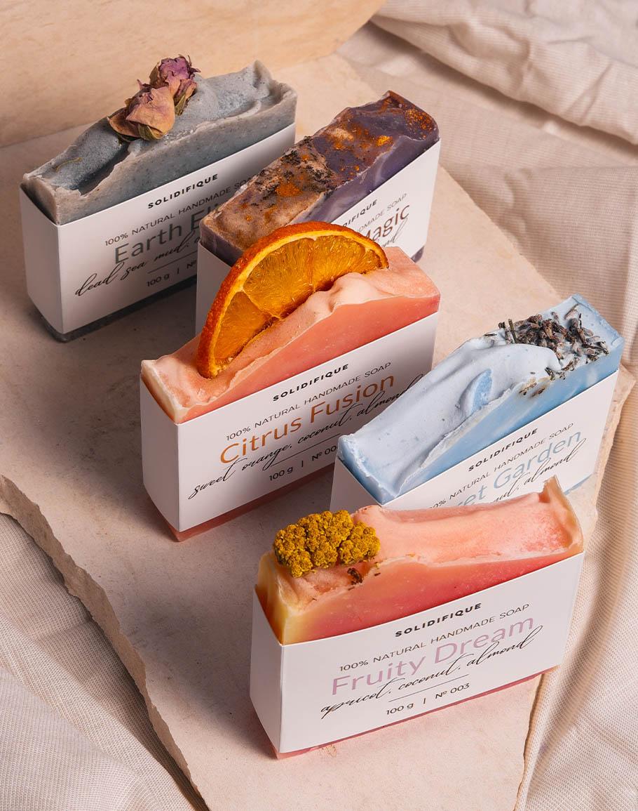 Луксозен сапун на българската марка SOLIDIFIQUE. SOLIDIFIQUE е бранд с мисия - мисия да предостави най-доброто за Вашата кожа и коса по специален начин и мисия да го направи уважавайки природата и обичайки планетата, на която живеем. Иновативна, твърда козметика за лице, тяло и коса с разкошни текстури, аромати и безброй ползи за здравето и красотата на кожата и косата. Добре дошли в устойчивия свят на SOLIDIFIQUE, където красотата се среща с удоволствието!