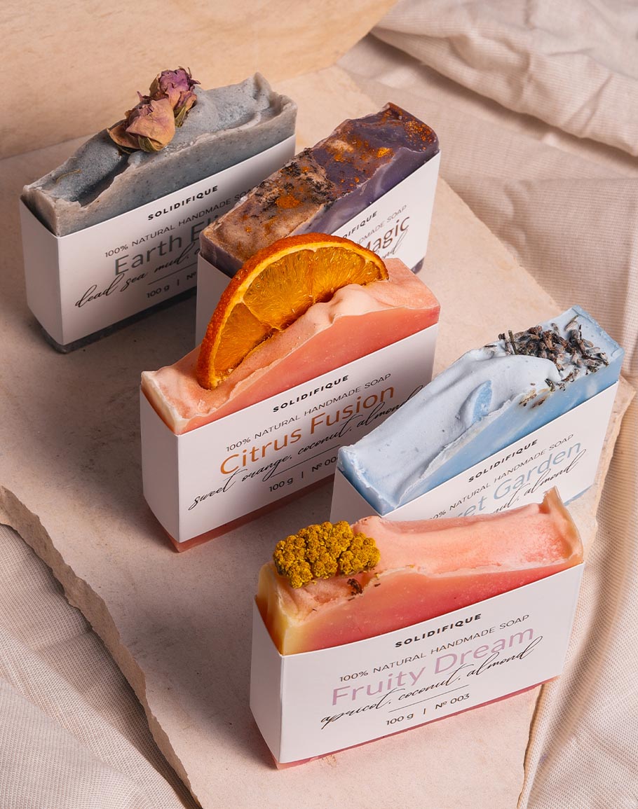 Луксозен сапун на българската марка SOLIDIFIQUE. SOLIDIFIQUE е бранд с мисия - мисия да предостави най-доброто за Вашата кожа и коса по специален начин и мисия да го направи уважавайки природата и обичайки планетата, на която живеем. Иновативна, твърда козметика за лице, тяло и коса с разкошни текстури, аромати и безброй ползи за здравето и красотата на кожата и косата. Добре дошли в устойчивия свят на SOLIDIFIQUE, където красотата се среща с удоволствието!