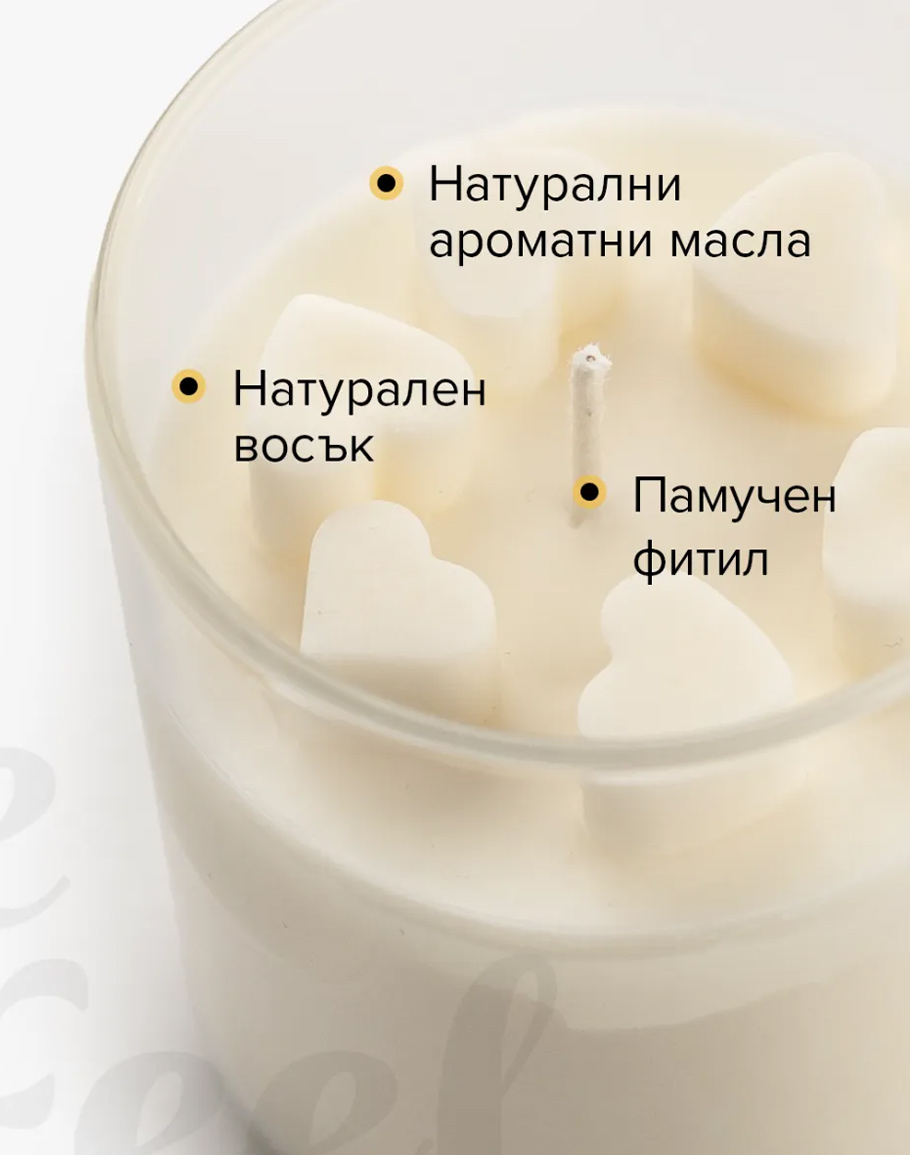 Свещ със сърца FULL OF LOVE