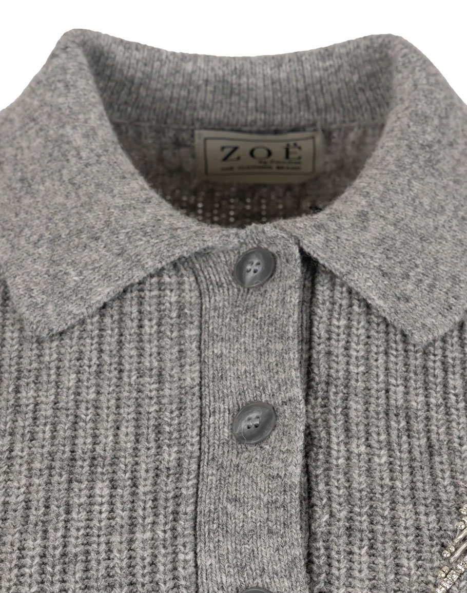 детайли: авторска бродерия, оребрена плетка, яка с копчета