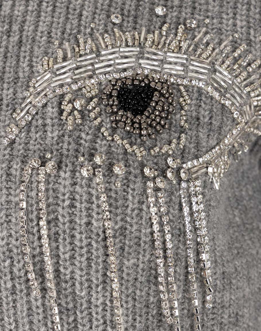 Вълнен пуловер SILVIE изработен от вълнена смес с оребрена плетка. Вертикалните линии на плетката на пуловера придават елегантен вид. Със своите супер фини вълнени влакна, вълненият пуловер създава изключително меко усещане и висока способност за задържане на топлина. Вълнен пуловер AMIRA е декориран с ръчно изработени флорални детайли, изтъкани в живи цветове, които придават допълнителен чар на всичко, с което го съчетаете. Съчетайте пуловера с любимите ви дънки или в елегантна визия с пола/рокля. Дамският вълнен пуловер се предлага в размери XS, S, M, L и XL, както и в цветове сиво и бяло.