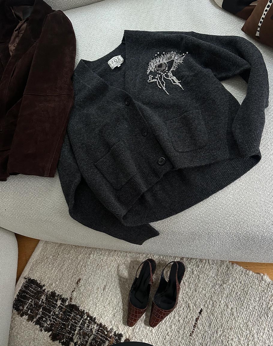 Дизайнерска жилетка на българския бранд ZOË. Марката работи с естествени материи за всеки свои артикул. Държи на ръчната работа, индивидуалността и се характеризира с разпознаваем почерк, който не търпи модни трендове и не остарява във времето!