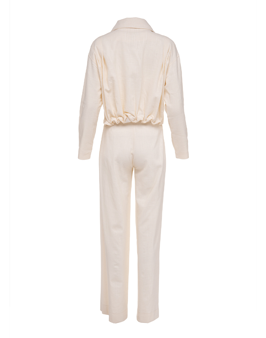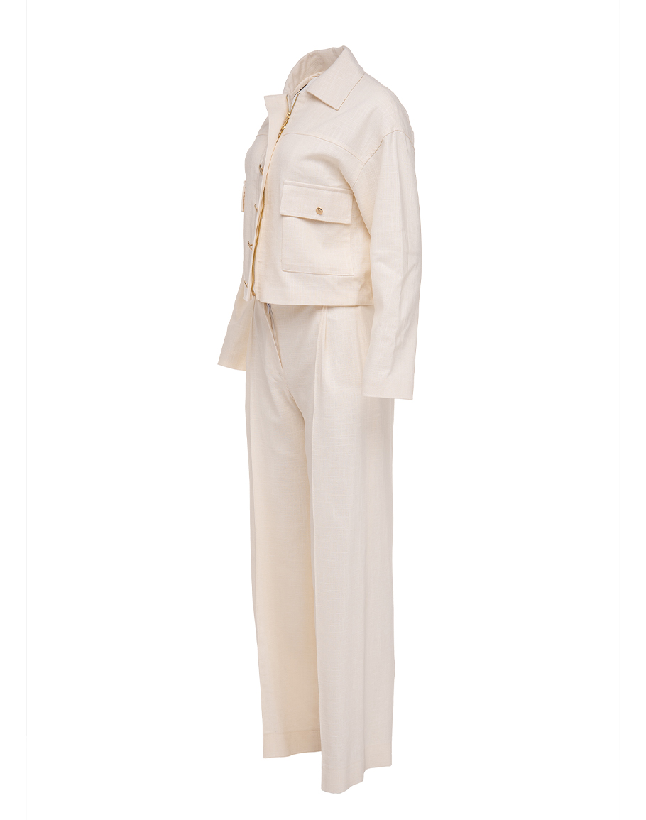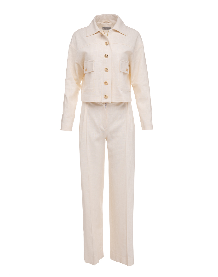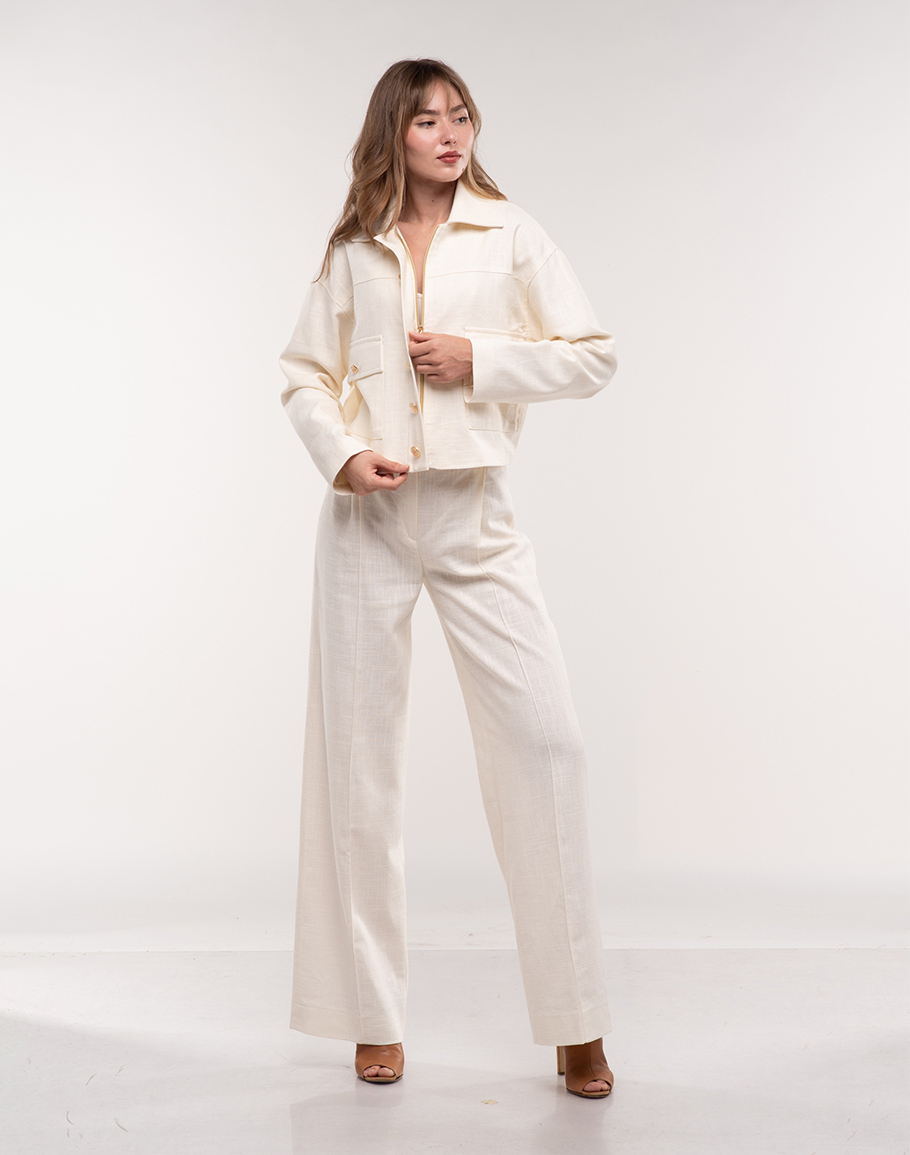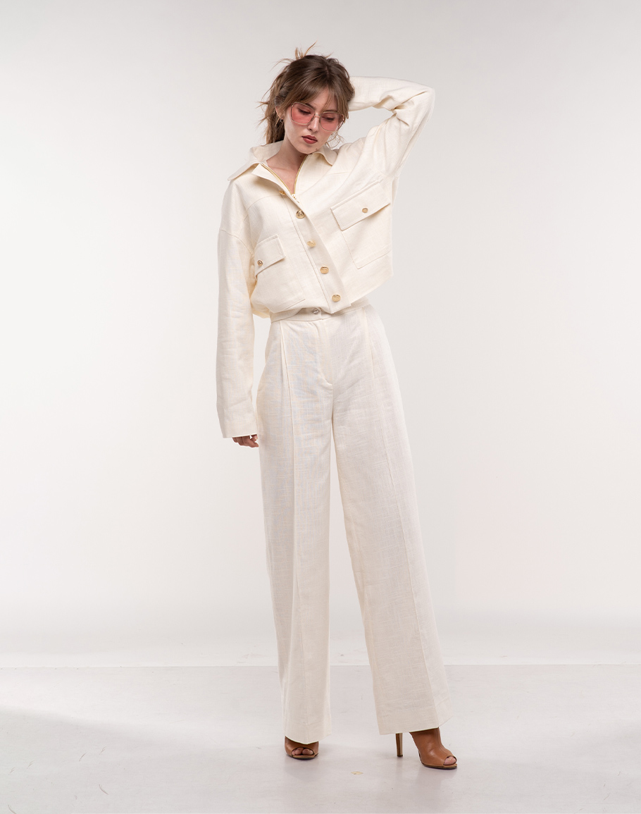 Яке от лен в цвят ванилия изработен от висококачествен лен. Ваниловото яке е със скрит цип, декоративни копчета и джобове. Ваниловият цвят внася мекота и стил – идеален за пролет и лято. Лененото яке е подходящо е както за ежедневието, така и за по-официални поводи – комбинира се лесно с рокли, панталони или дънки, като придава модерна и изтънчена визия. Дамското ленено яке в цвят ванилия се предлага в размери S/M и M/L.